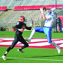 Cade Christensen hauls in a first-quarter touchdown pass during the state championship game.