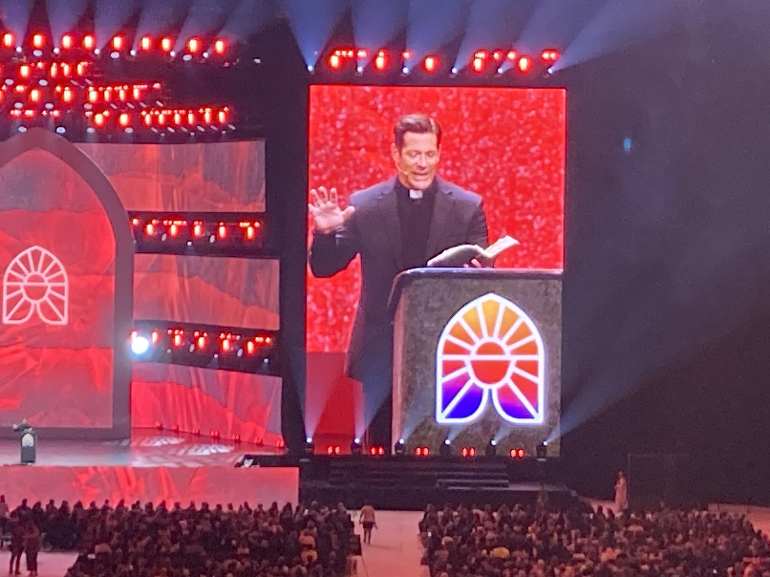 Fr. Mike Schmitz was a headline speaker the evening of Thursday, July 18, at the National Eucharistic Congress in Indianapolis. (Photos by Kathleen McGillis Drayna)