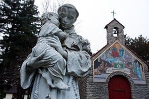 Catholics are welcome to visit the grounds to pray at the meandering mosaic Stations of the Cross, the Our Lady of Lourdes grotto, and the shrine of Our Lady of Czestochowa — the Black Madonna of the Poles.
