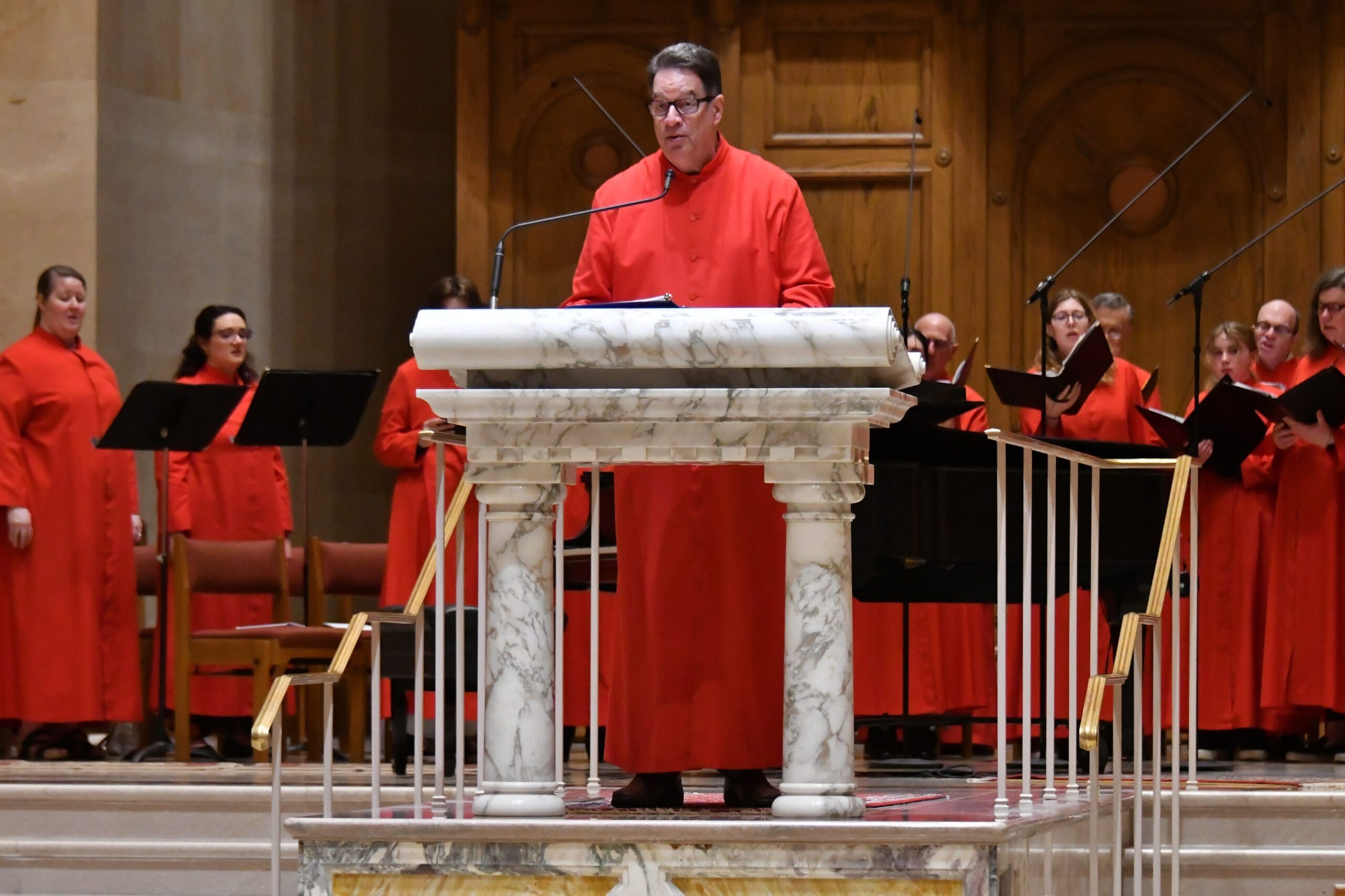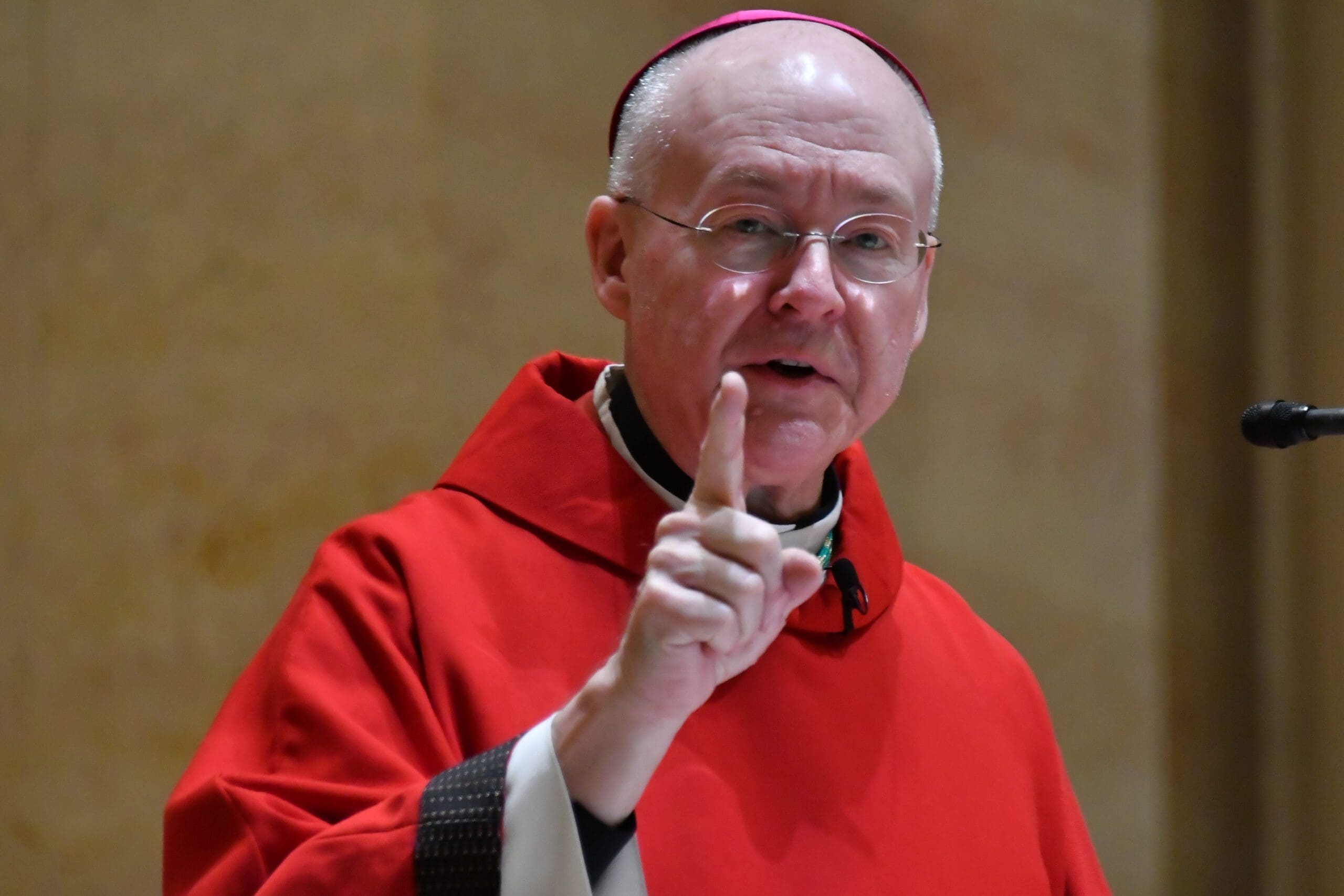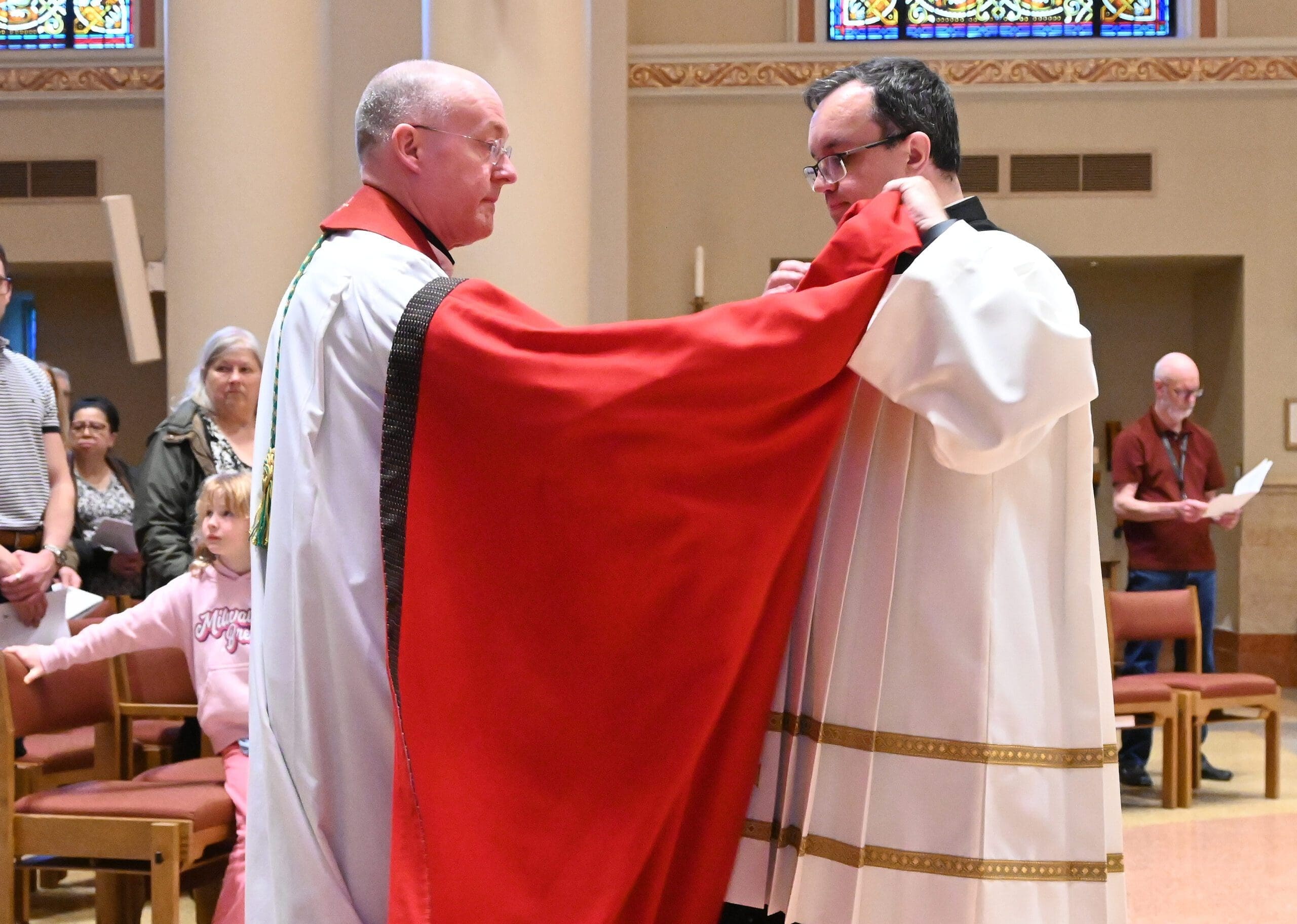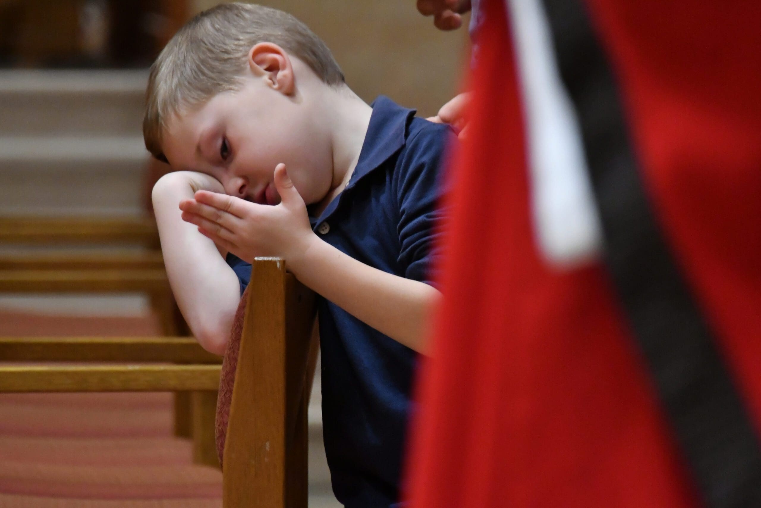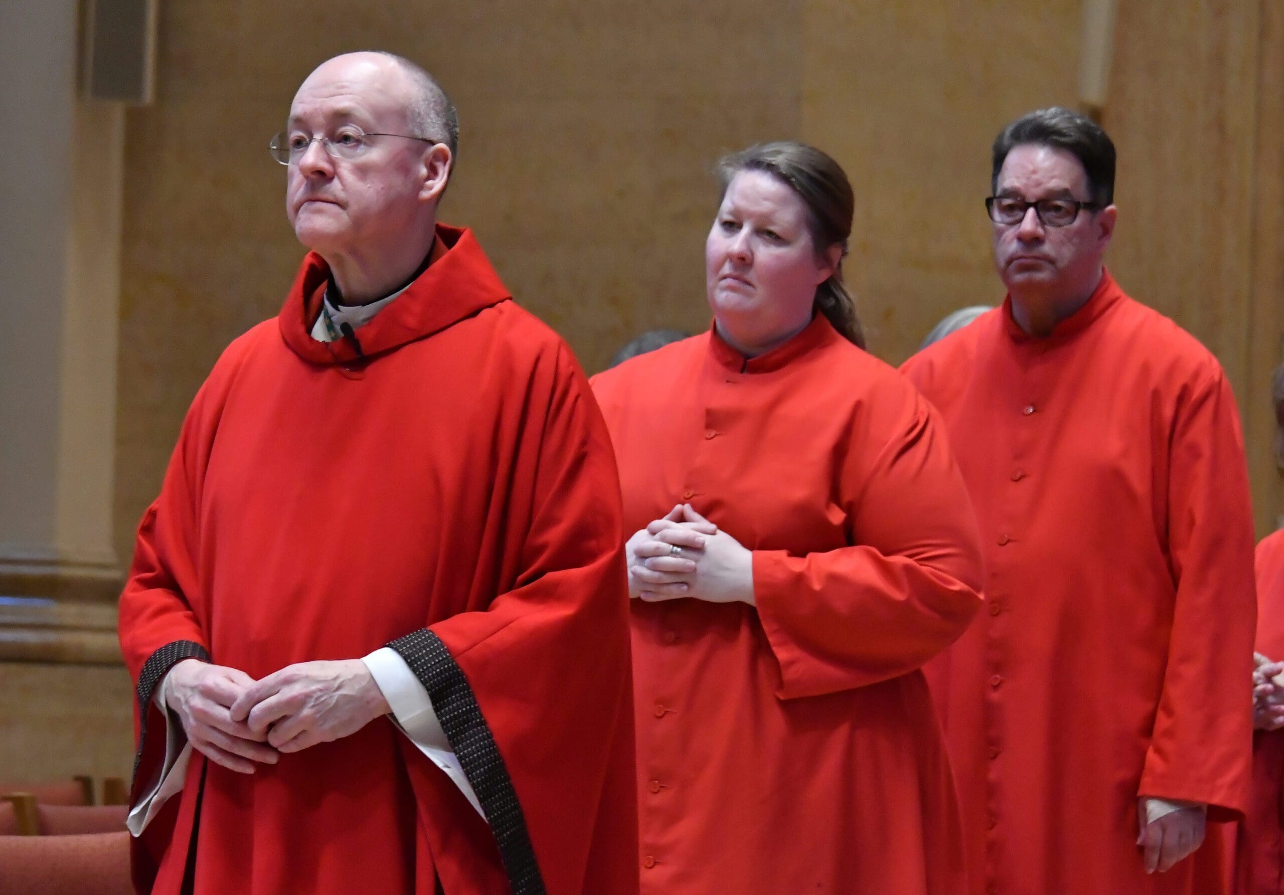 Archbishop Jeffrey S. Grob offers Veneration of the Cross to the faithful attending the Celebration of the Passion of the Lord service on Good Friday, April 18, at the Cathedral of St. John the Evangelist, Milwaukee. (Photos by David Bernacchi)