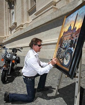 Uhl, officially licensed Harley-Davidson oil painter, will be in Milwaukee as part of Harley-Davidson’s 110th anniversary celebration, Aug. 29 to Sept. 1, with his Vatican-inspired work.
