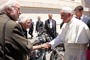 This time, God, through his artwork, led him on a journey on the back of a Harley to Rome in June where Uhl not only was commissioned by the Vatican to create a special commemorative postcard to be sold during the Harley 110th celebration there, but was also granted an audience with Pope Francis.