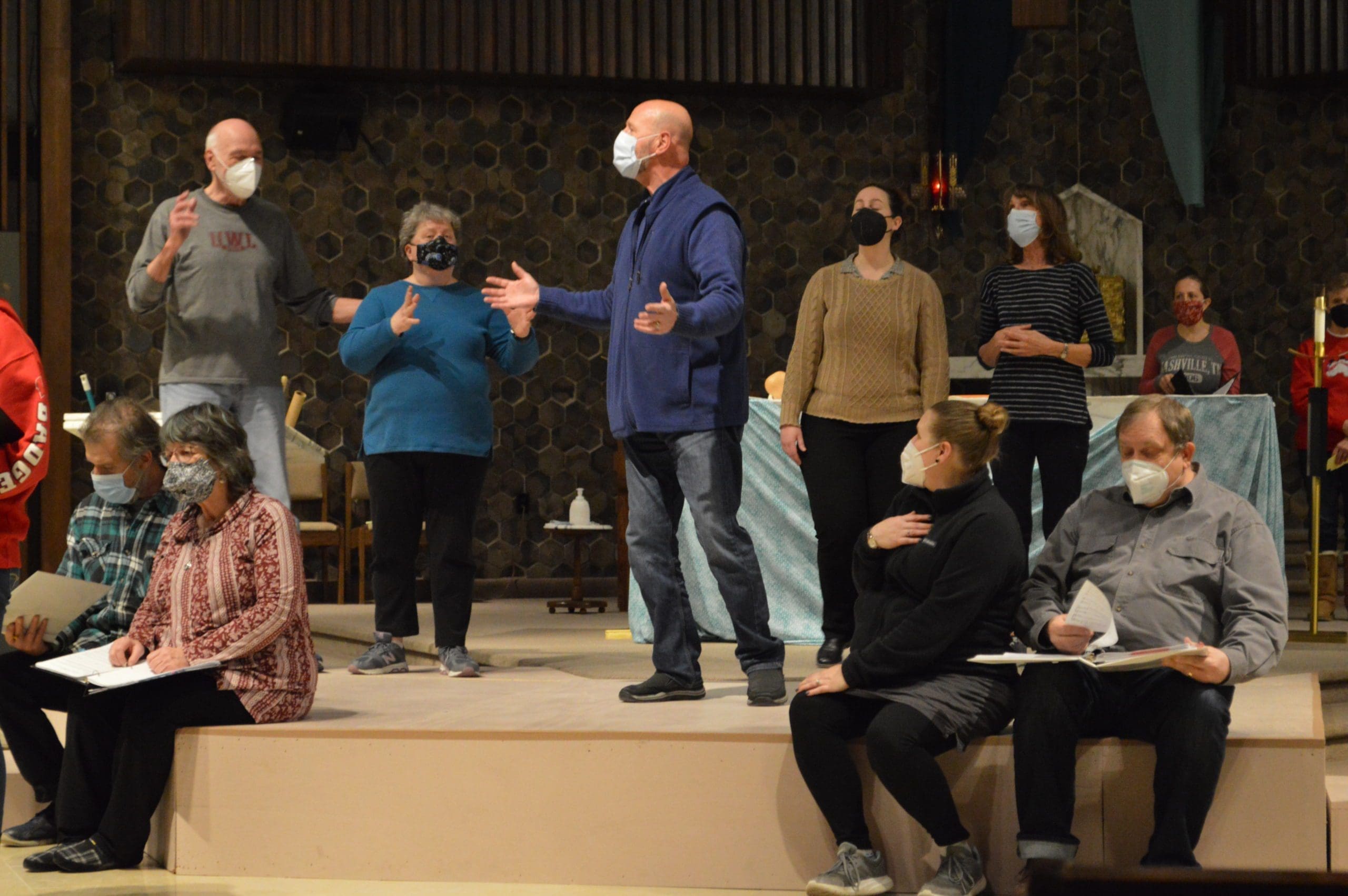 One of the most significant challenges of the production for Stepanski is staging a full-length musical in the parish sanctuary with parish volunteers, trying to make it work in a non-traditional theatre space.