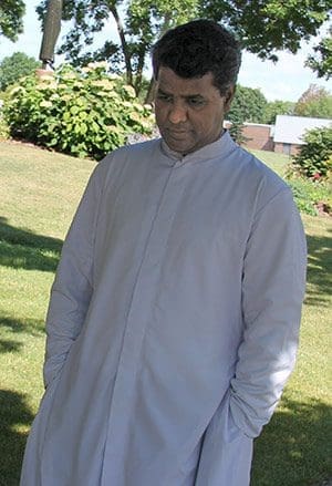 Fr. Naidu, ordained a priest for the Diocese of Tiruchirapallli in 2003, is modest in his explanation of the work he has Fr. Thomas Naidu is pictured outside the rectory at the Sacred Heart site of Holy Family Catholic Community in Fond du Lac in mid-August. (Catholic Herald photo by Steve Wideman)done during assignments in India, Africa, the Middle East and South America, particularly among the poor in Brazil.