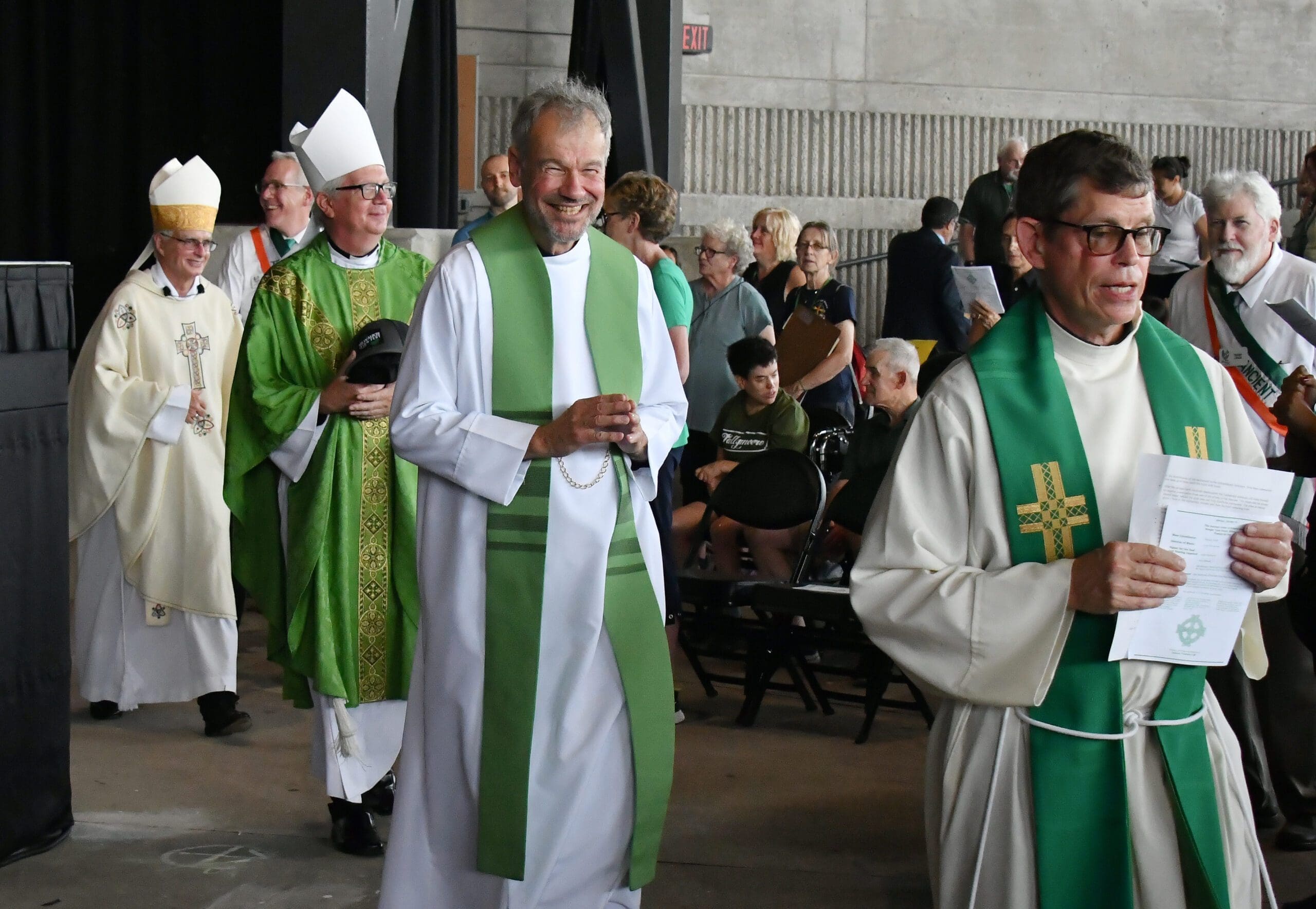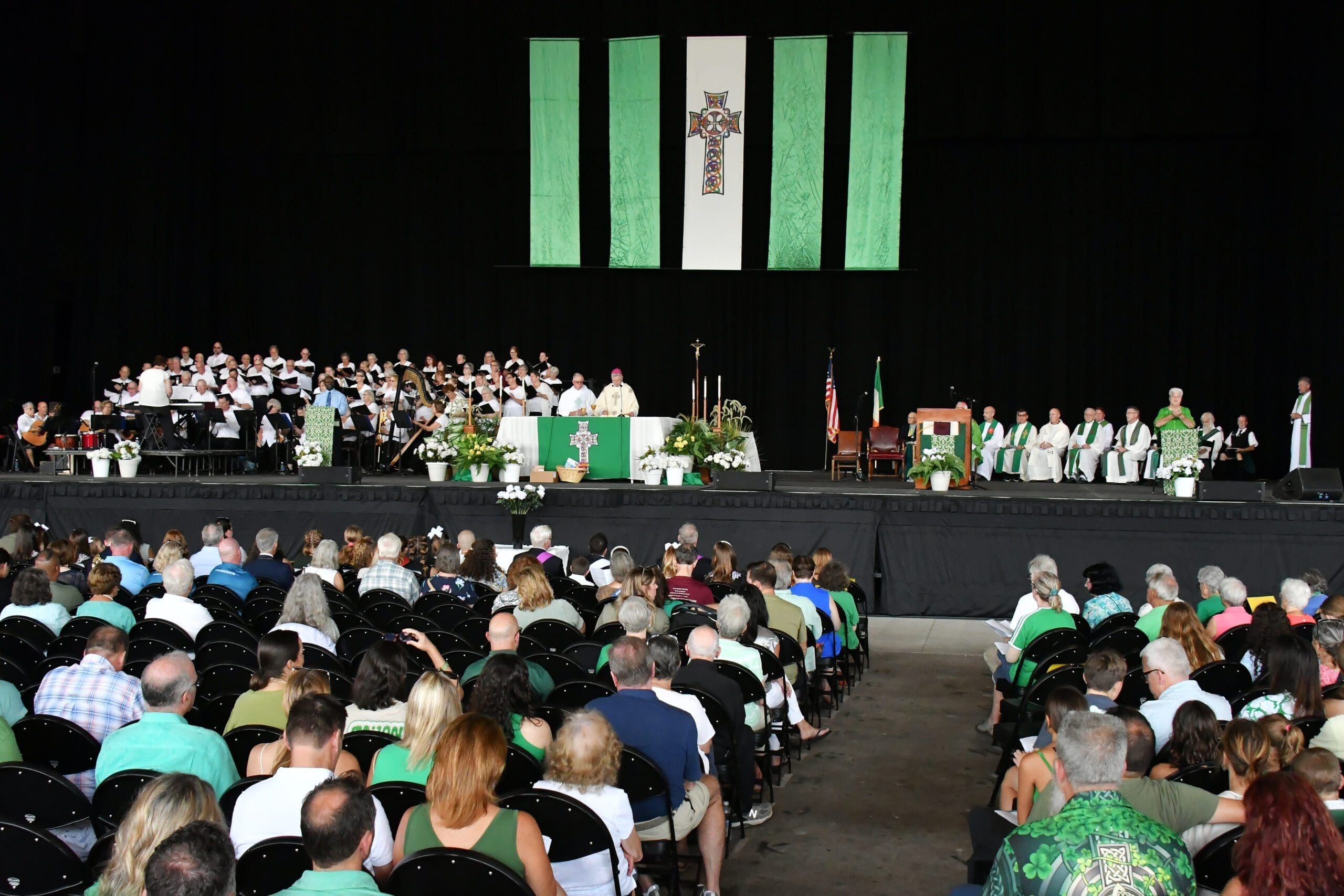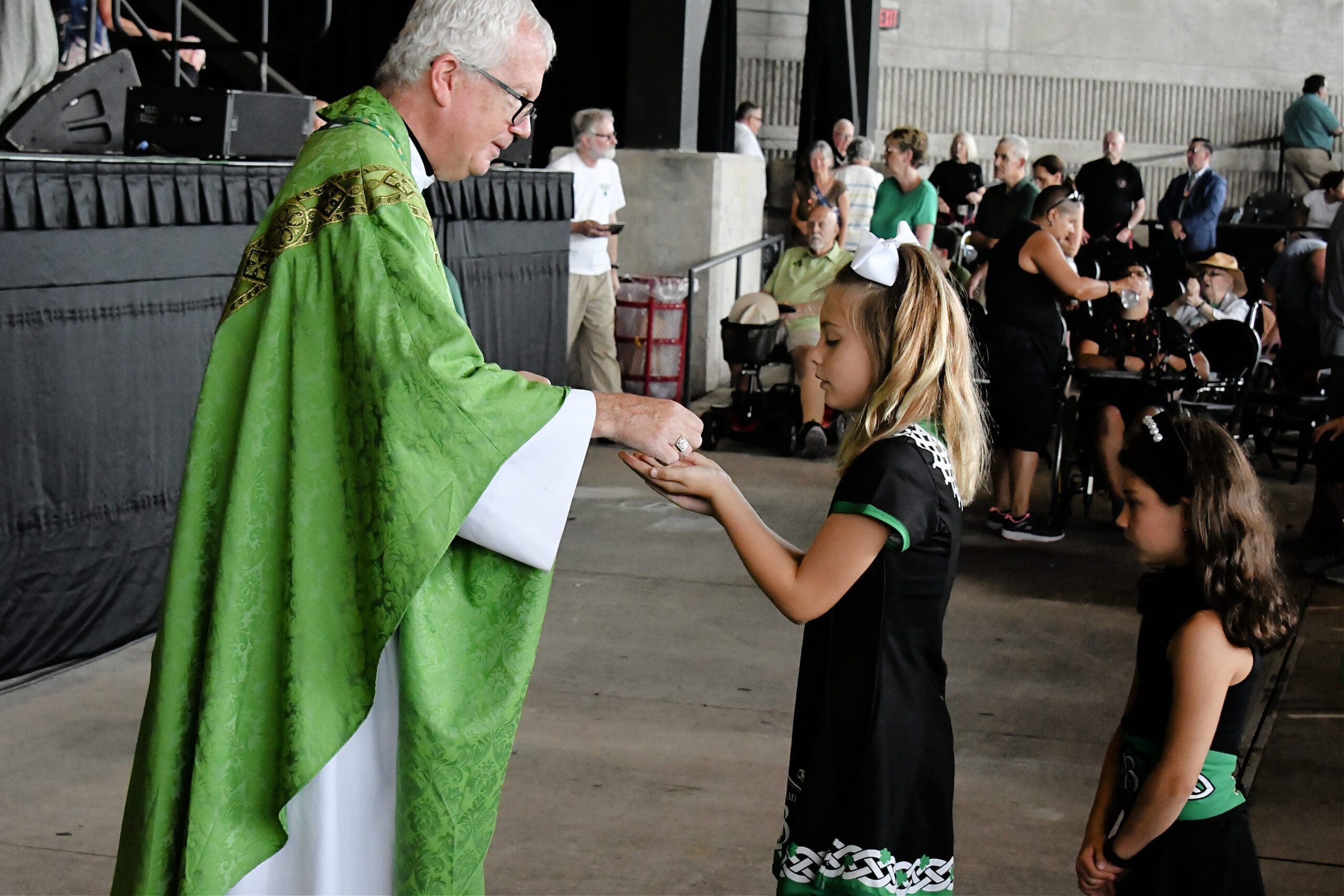 Roses are placed in a vase before the Irish Fest Liturgy for Peace and Justice on Sunday, Aug. 20. (Photos by David Bernacchi)