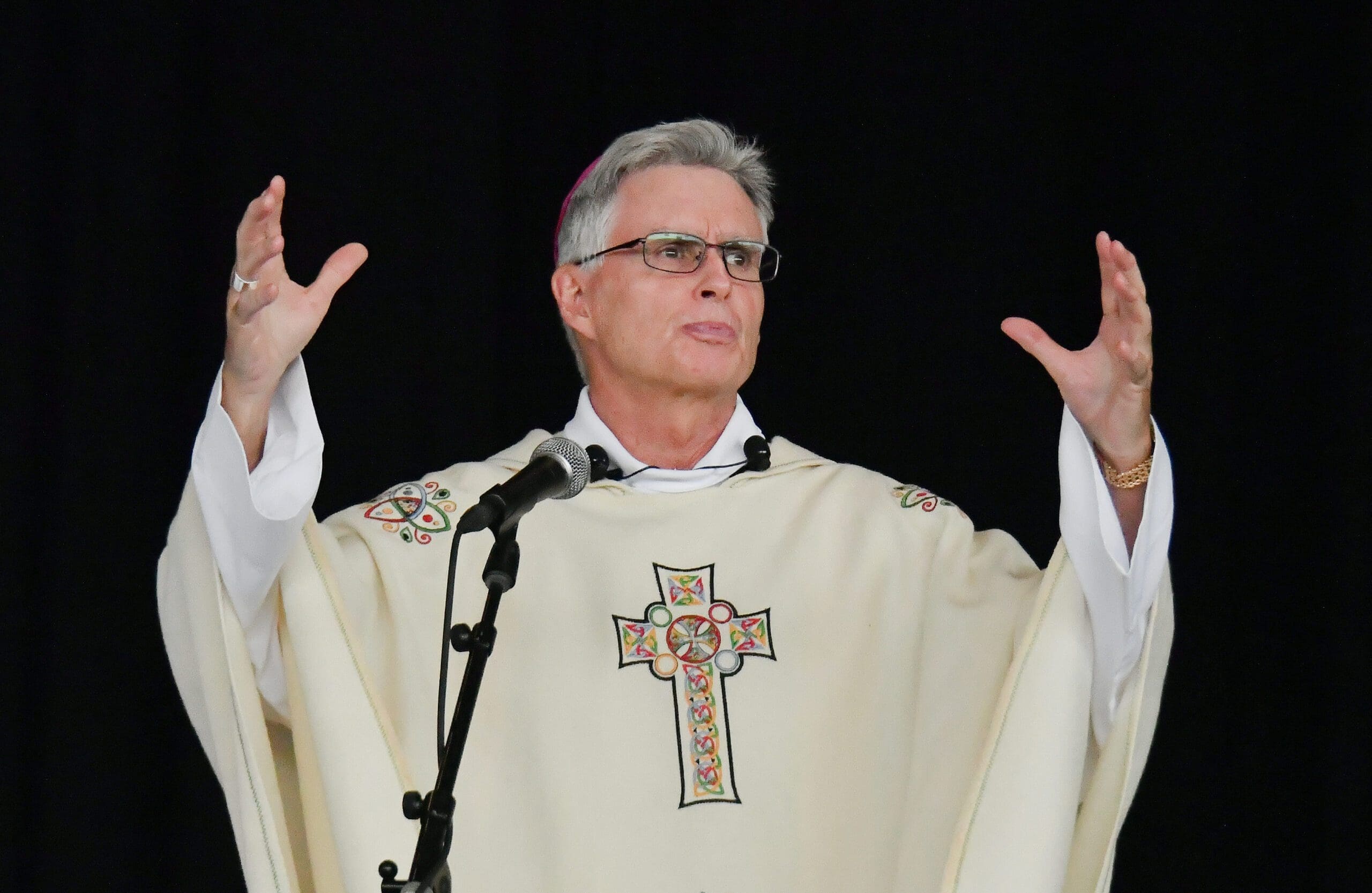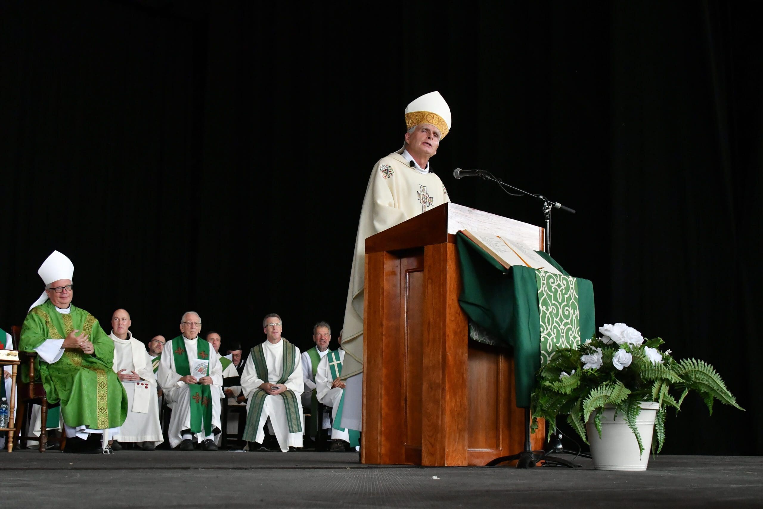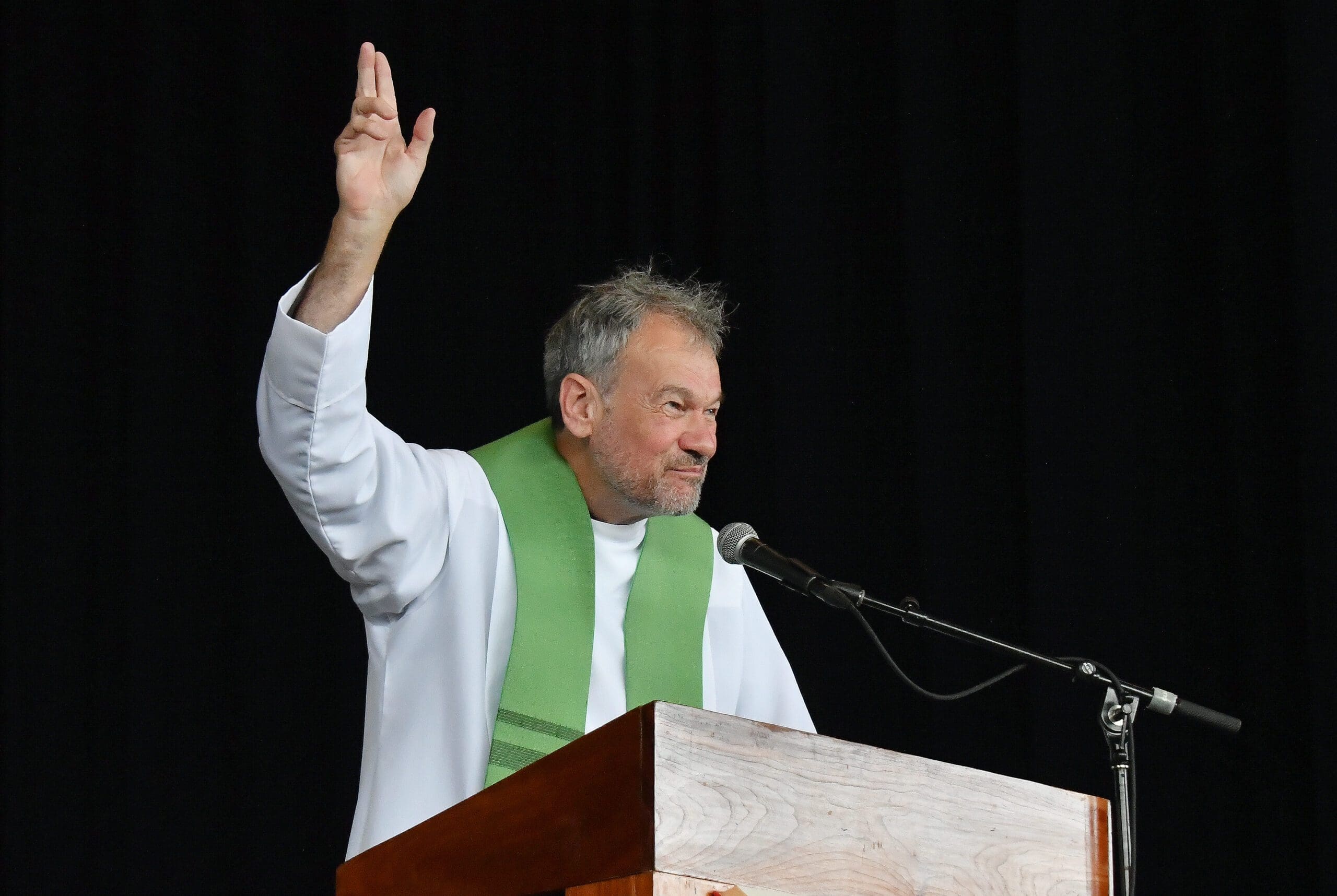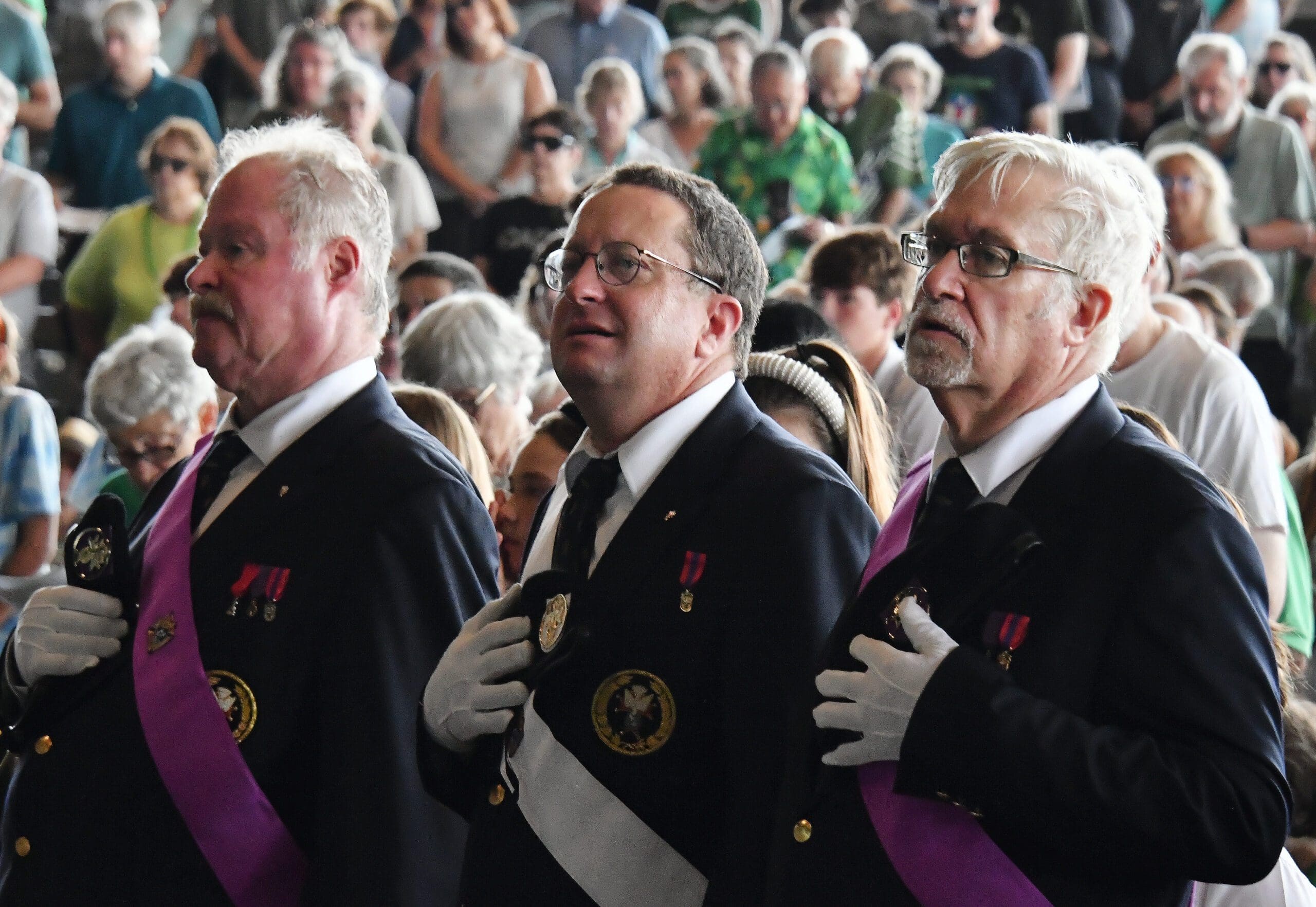 Roses are placed in a vase before the Irish Fest Liturgy for Peace and Justice on Sunday, Aug. 20. (Photos by David Bernacchi)