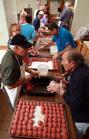 But members of the Pompeii Men’s Club, along with their wives, continue making meatballs for the fundraiser, illustrating a commitment to their belief that “service to humanity is the best work of life.”