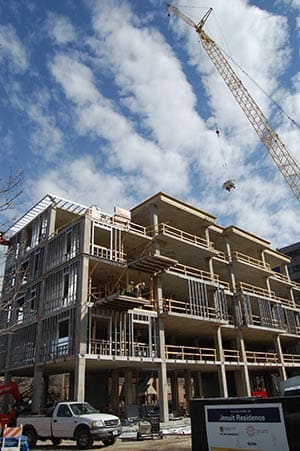 Groundbreaking took place last July for a new Jesuit residence on campus and in the months that have followed, the