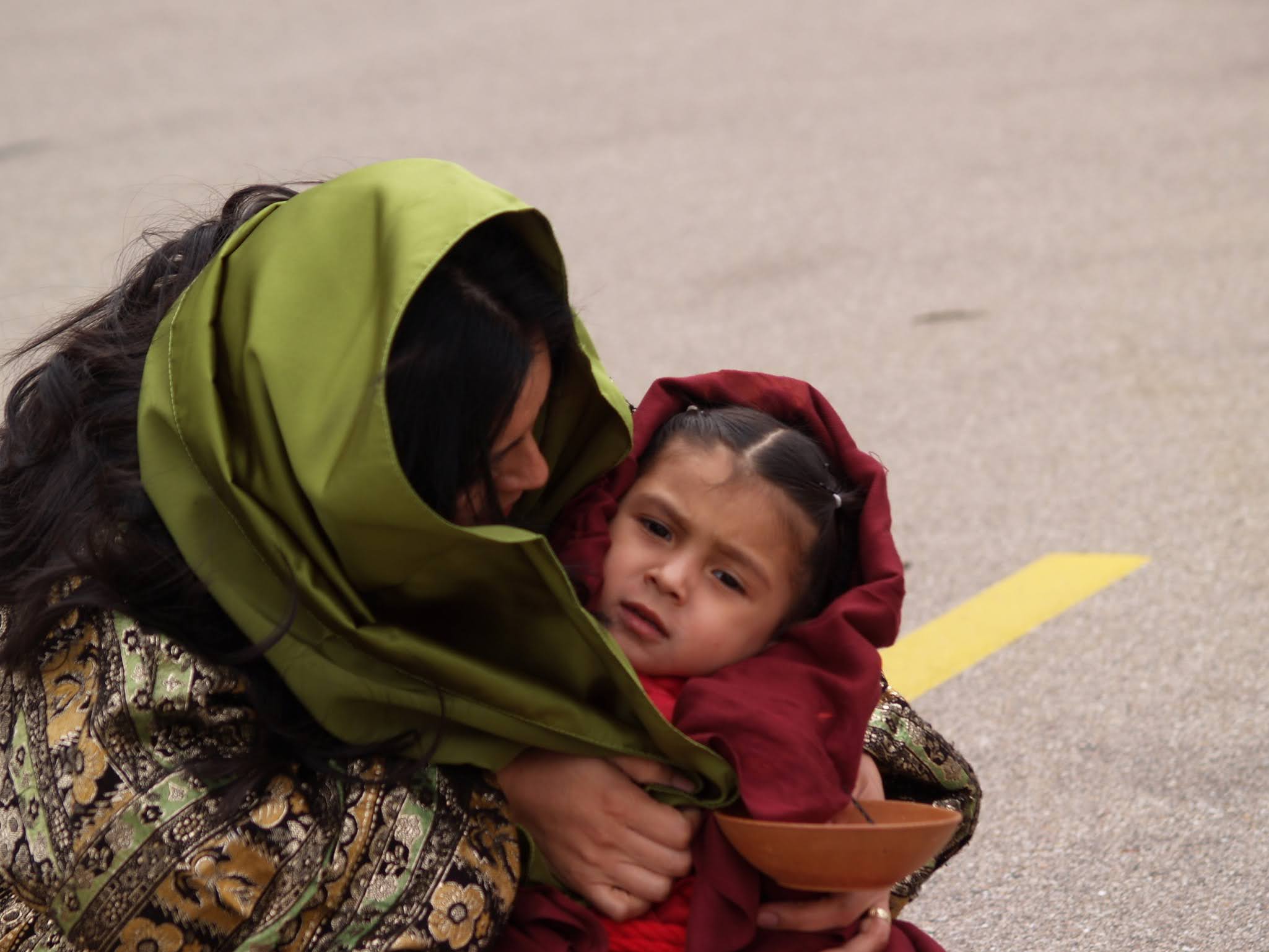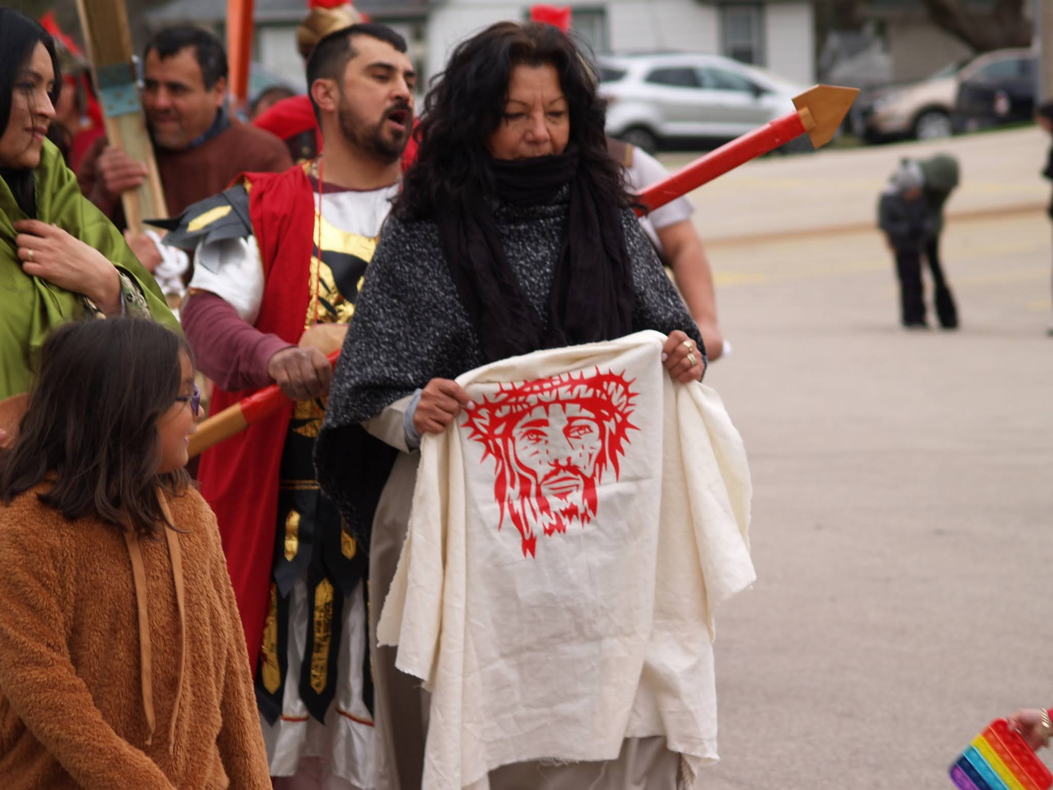 Among the worshippers following Jesus in the reenactment was 3-year-old Sofia Lozano and her mother, Toni Te Santiago. The two were part of the crowd of women crying for Jesus.