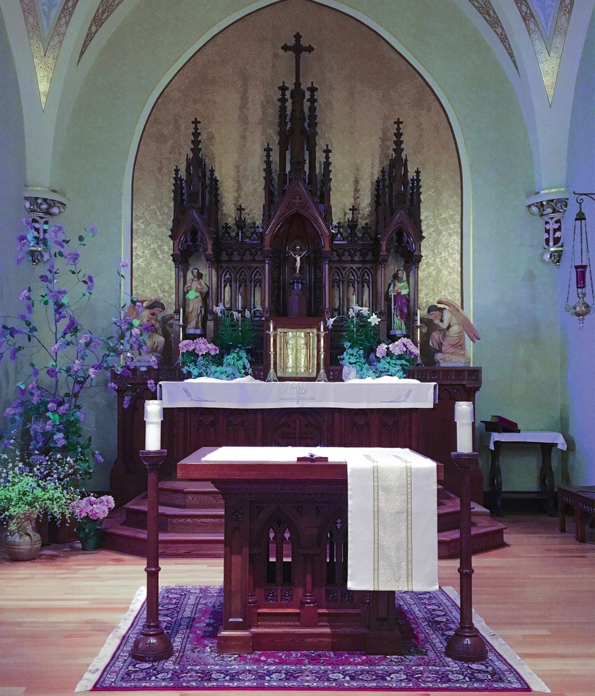 The first frame church began in 1867 and was dedicated on Jan. 6, 1868. That same year, Thomas and Martin Brody, who had helped build the church, died of “black measles” within days of each other, becoming the first to be buried in St. Mary’s historic cemetery. In those early years, St. Mary’s was often without a resident priest but the parish continued to grow, celebrating its first recorded baptism and first recorded marriage in 1872.