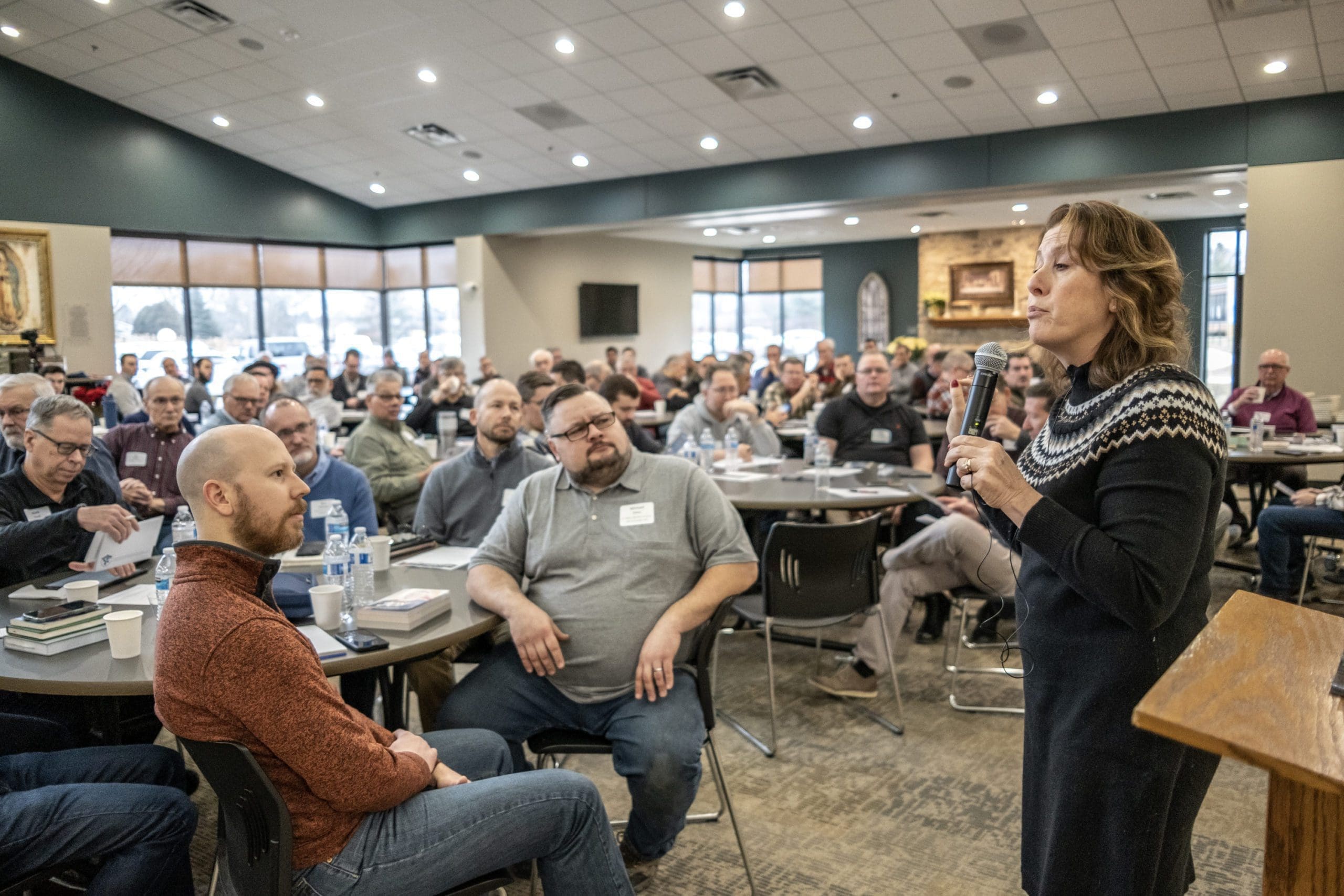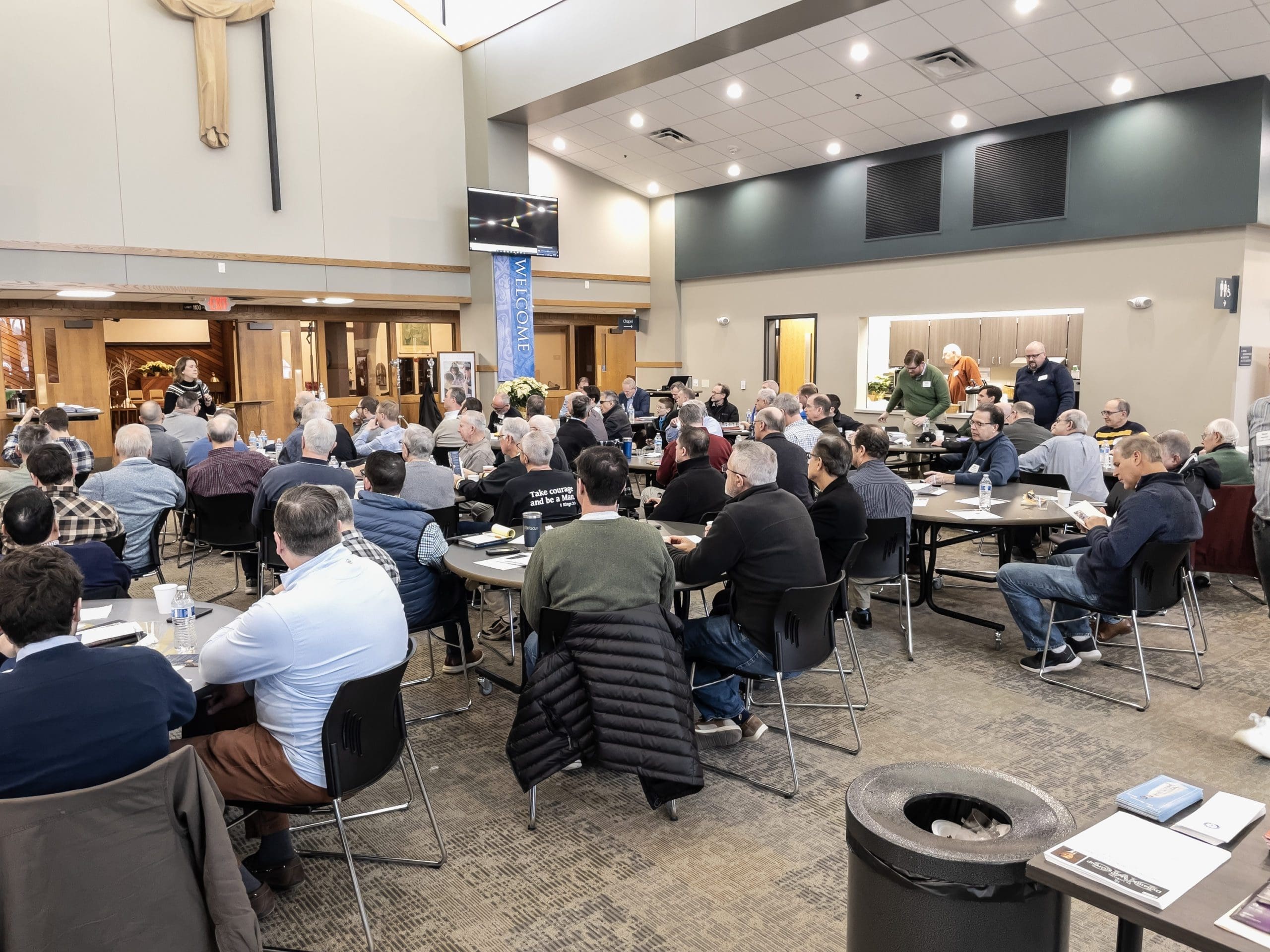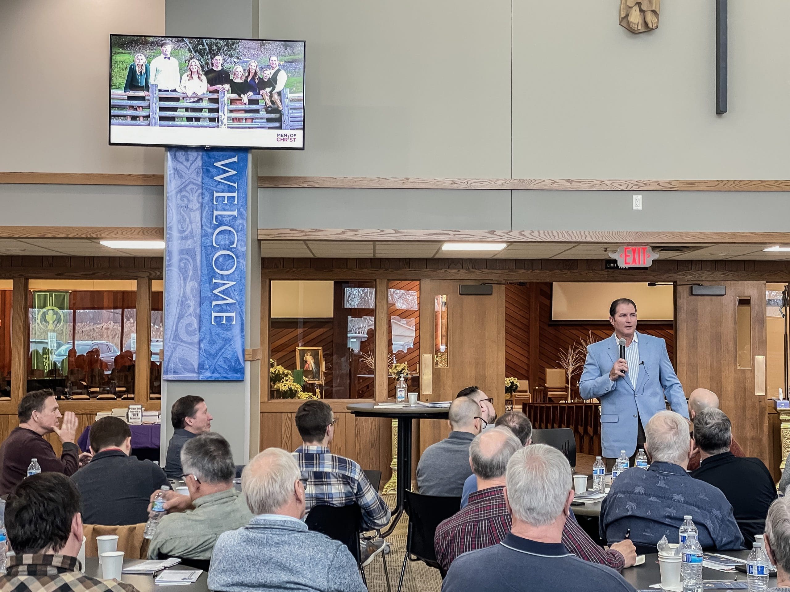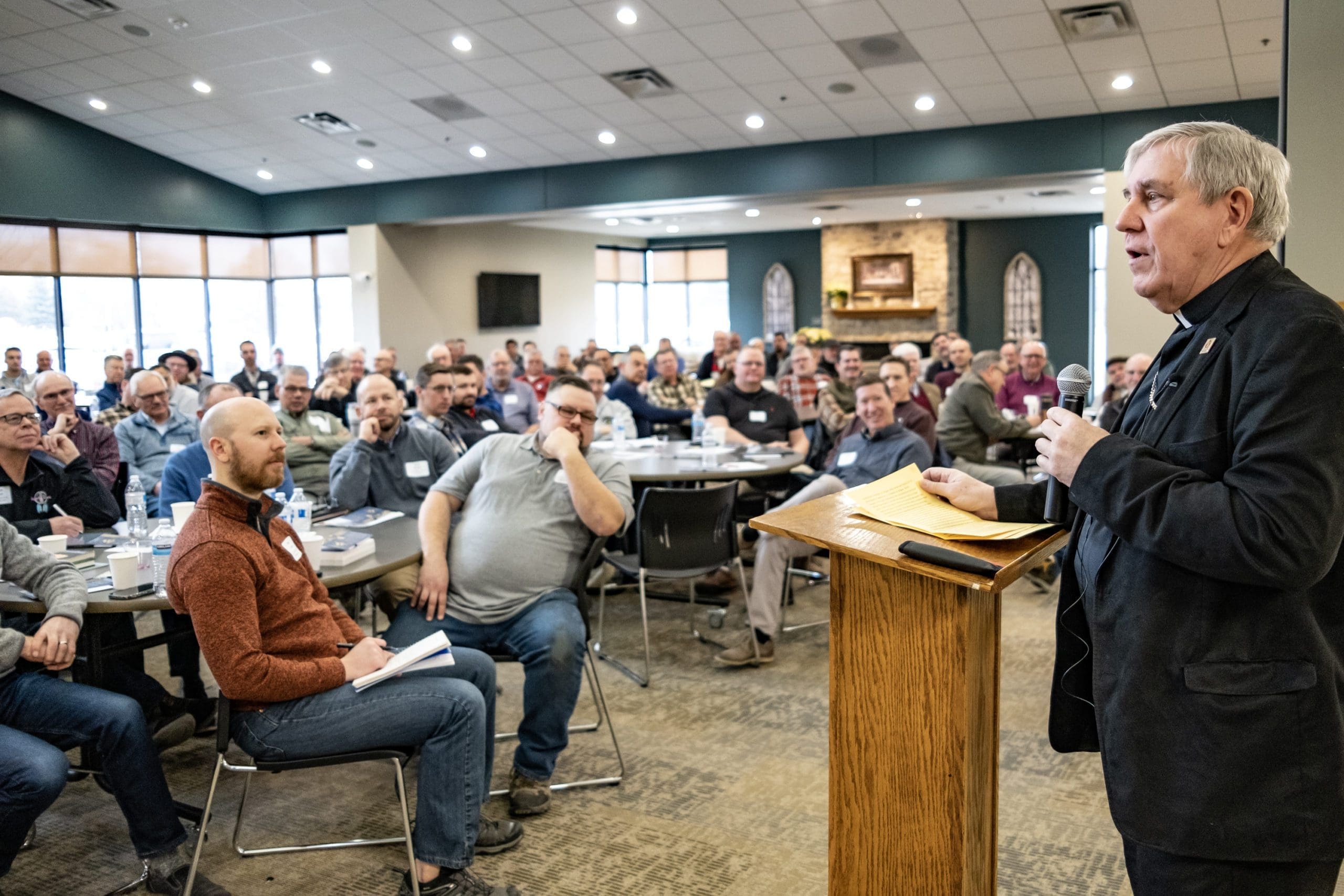 Former Major League Baseball all-star Mike Sweeney was the keynote speaker on Saturday, Jan. 14, as more than 170 men from 62 parishes gathered at St. Leonard Parish for the first of three pre-conference leadership meetings for Men of Christ, which will be held at many satellite locations on Saturday, March 11. Archbishop Jerome E. Listecki opened the meeting and delivered a special commissioning blessing over the men. Men of Christ is anticipating a draw of more than 5,000 men at this year’s conference, a hybrid event at super sites and parishes nationwide. Register your parish to host the conference, or register at a parish near you at MenofChrist.net. (Photos by Jim Michaletz)