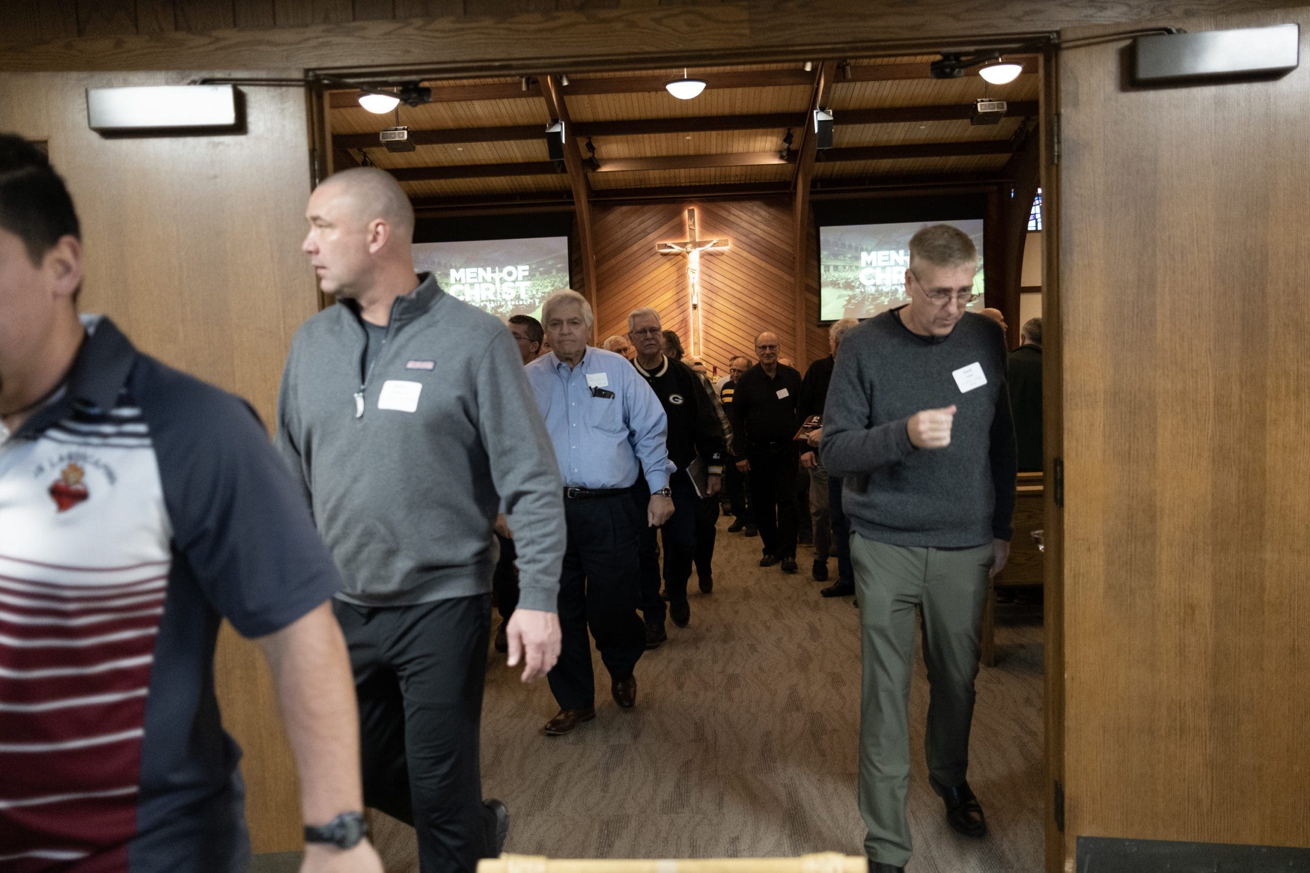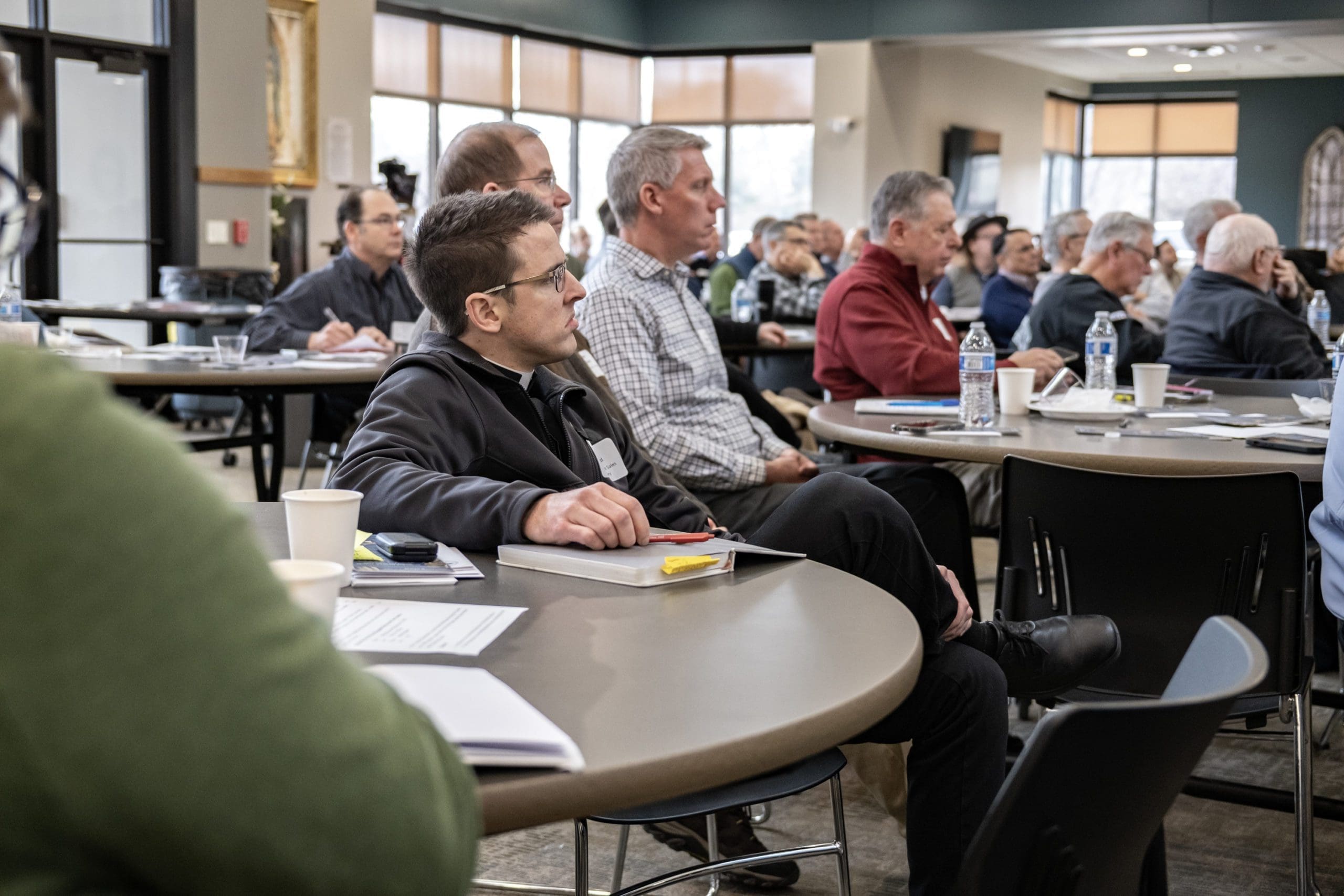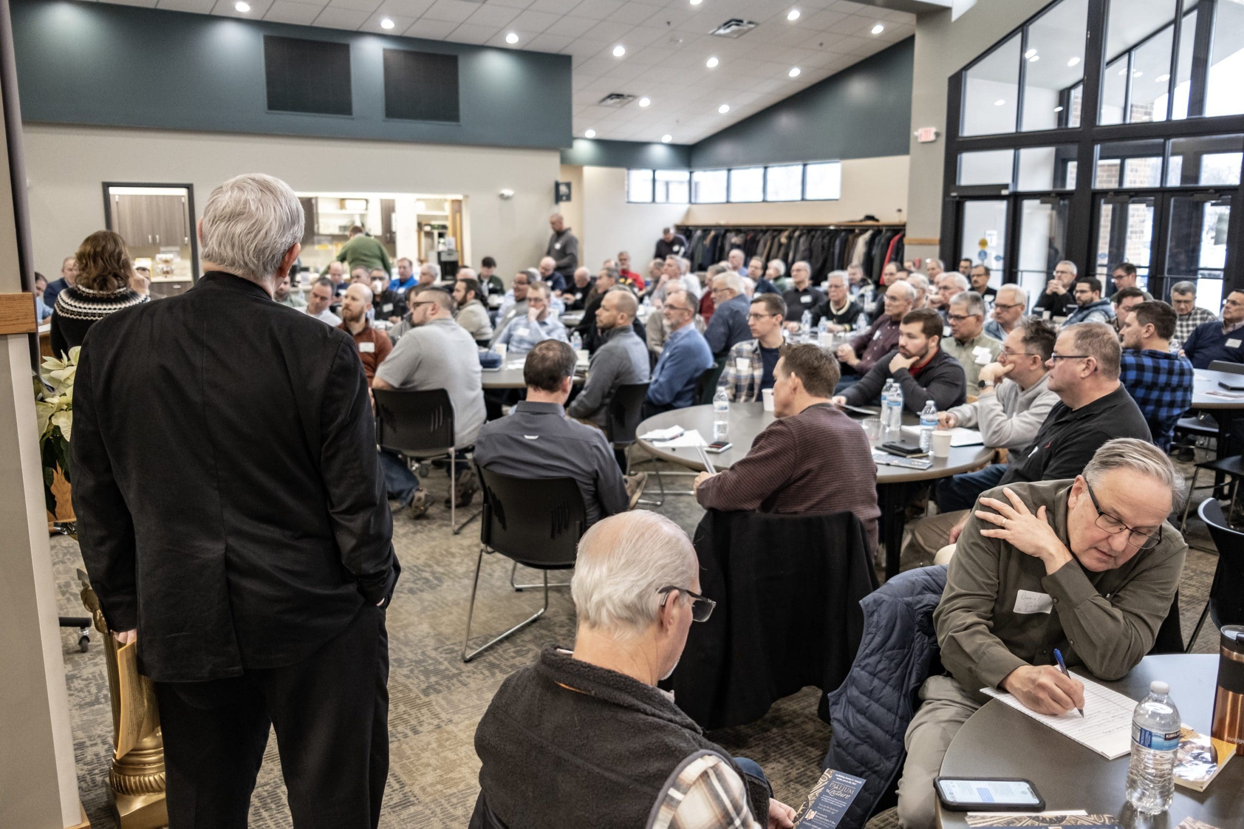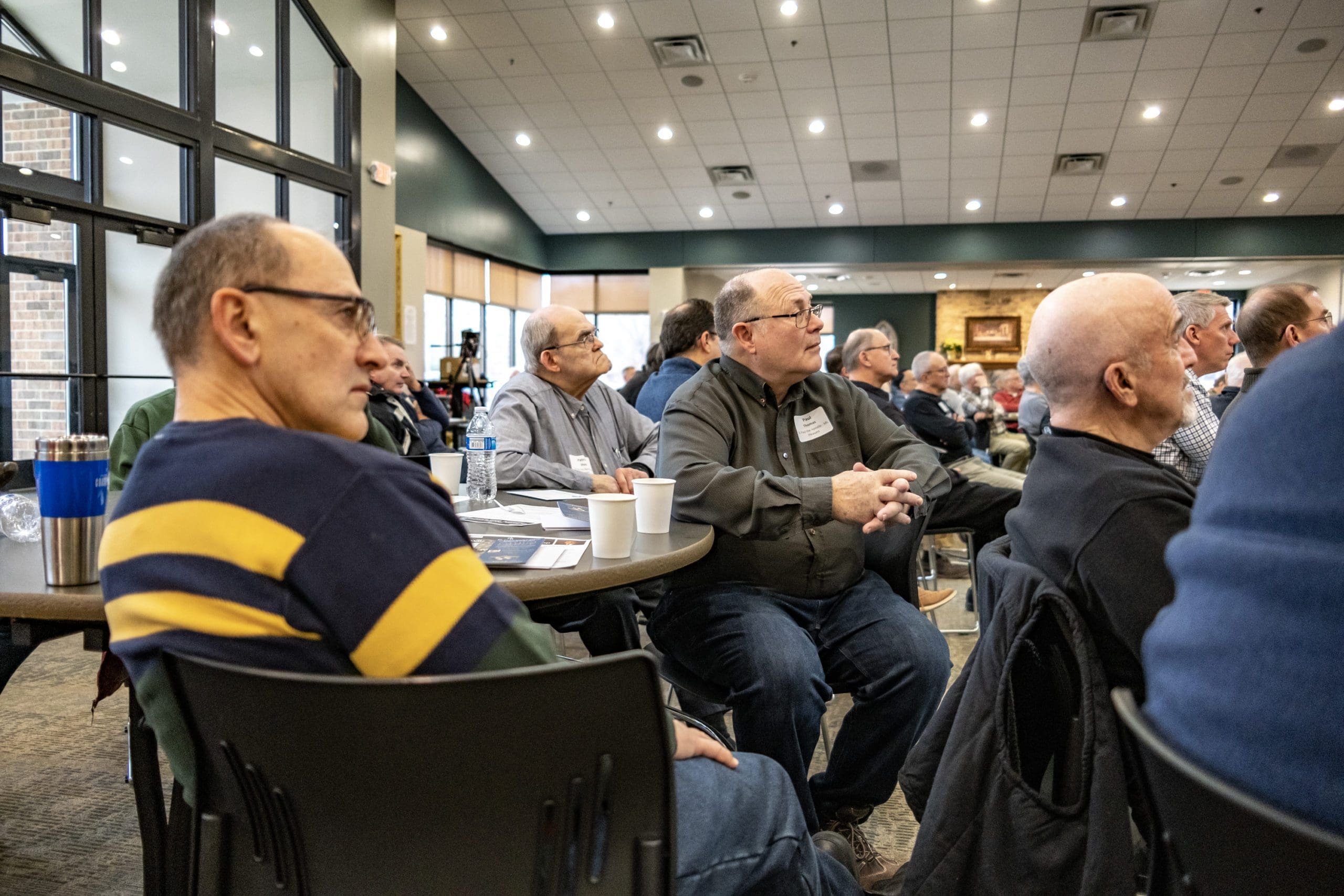 Former Major League Baseball all-star Mike Sweeney was the keynote speaker on Saturday, Jan. 14, as more than 170 men from 62 parishes gathered at St. Leonard Parish for the first of three pre-conference leadership meetings for Men of Christ, which will be held at many satellite locations on Saturday, March 11. Archbishop Jerome E. Listecki opened the meeting and delivered a special commissioning blessing over the men. Men of Christ is anticipating a draw of more than 5,000 men at this year’s conference, a hybrid event at super sites and parishes nationwide. Register your parish to host the conference, or register at a parish near you at MenofChrist.net. (Photos by Jim Michaletz)
