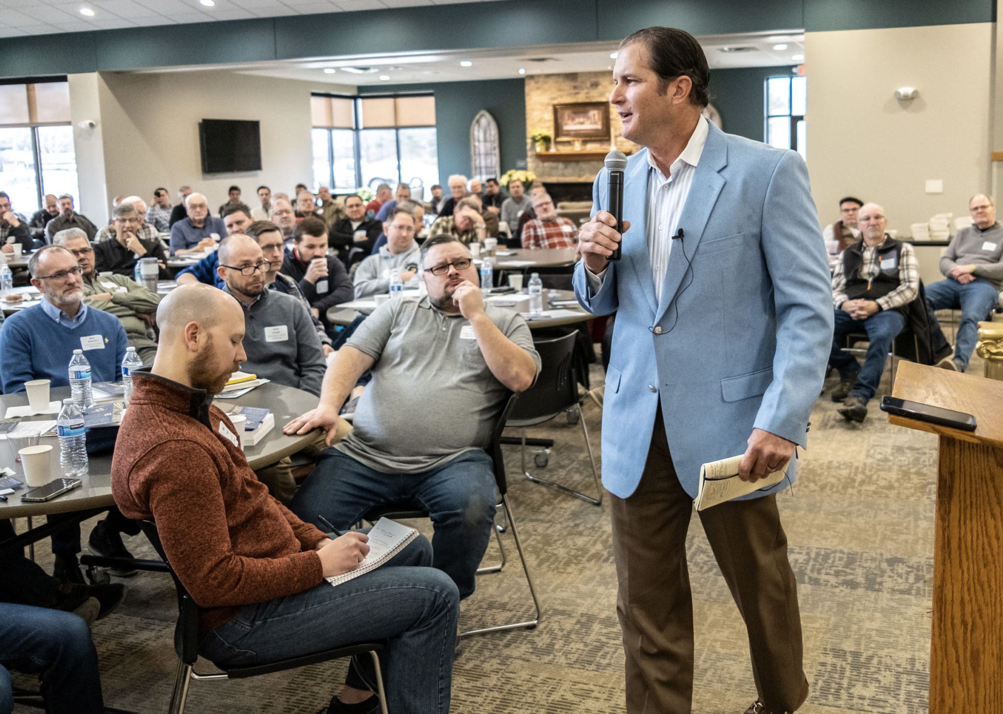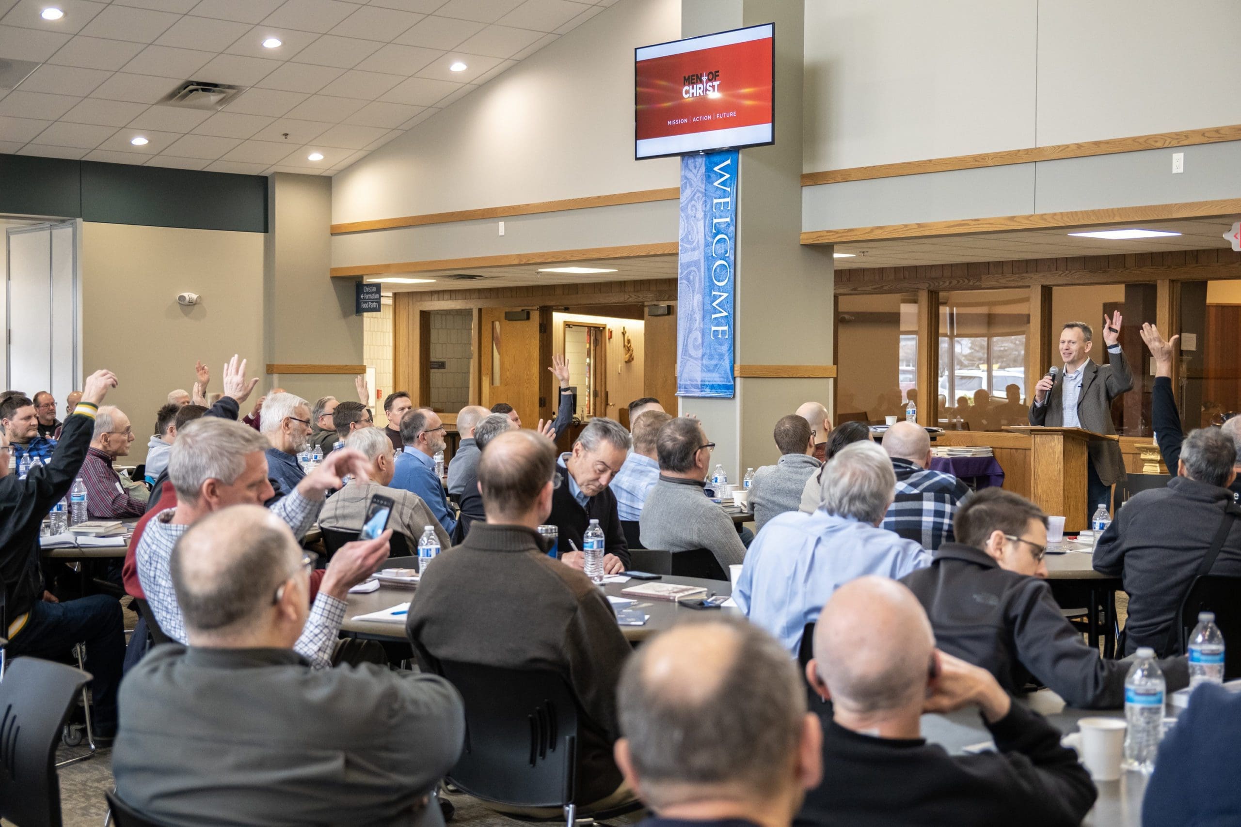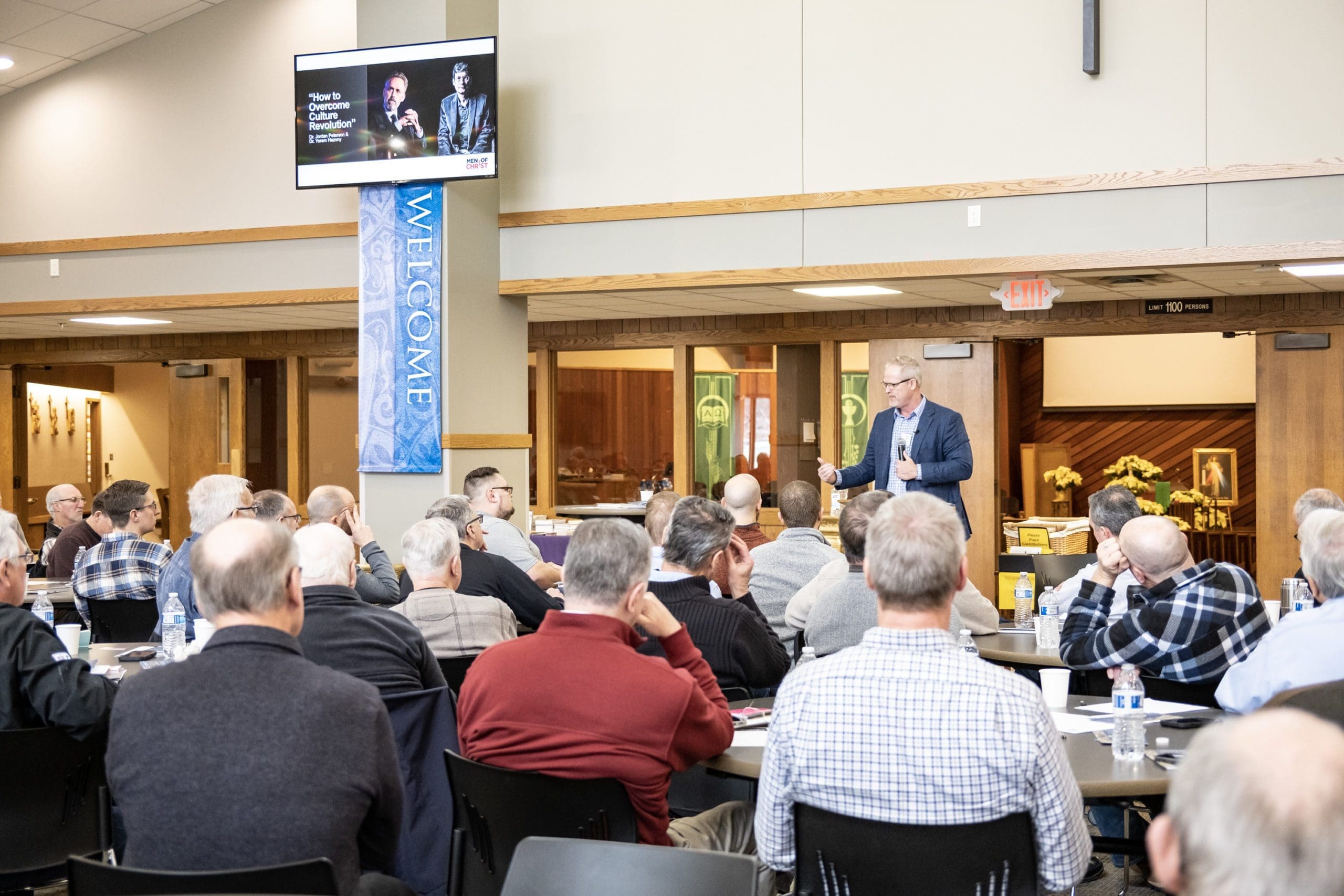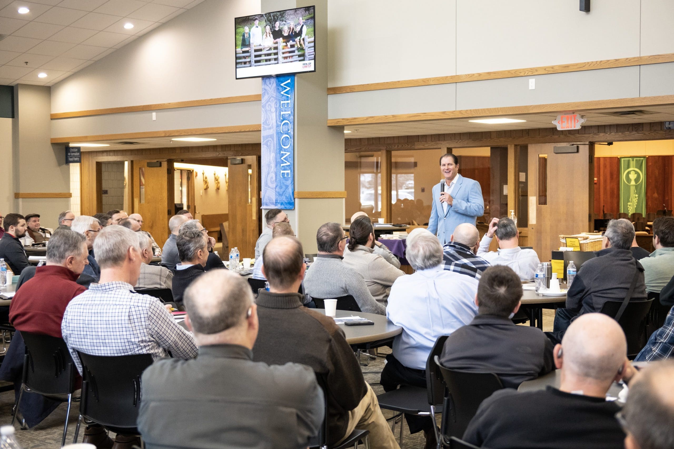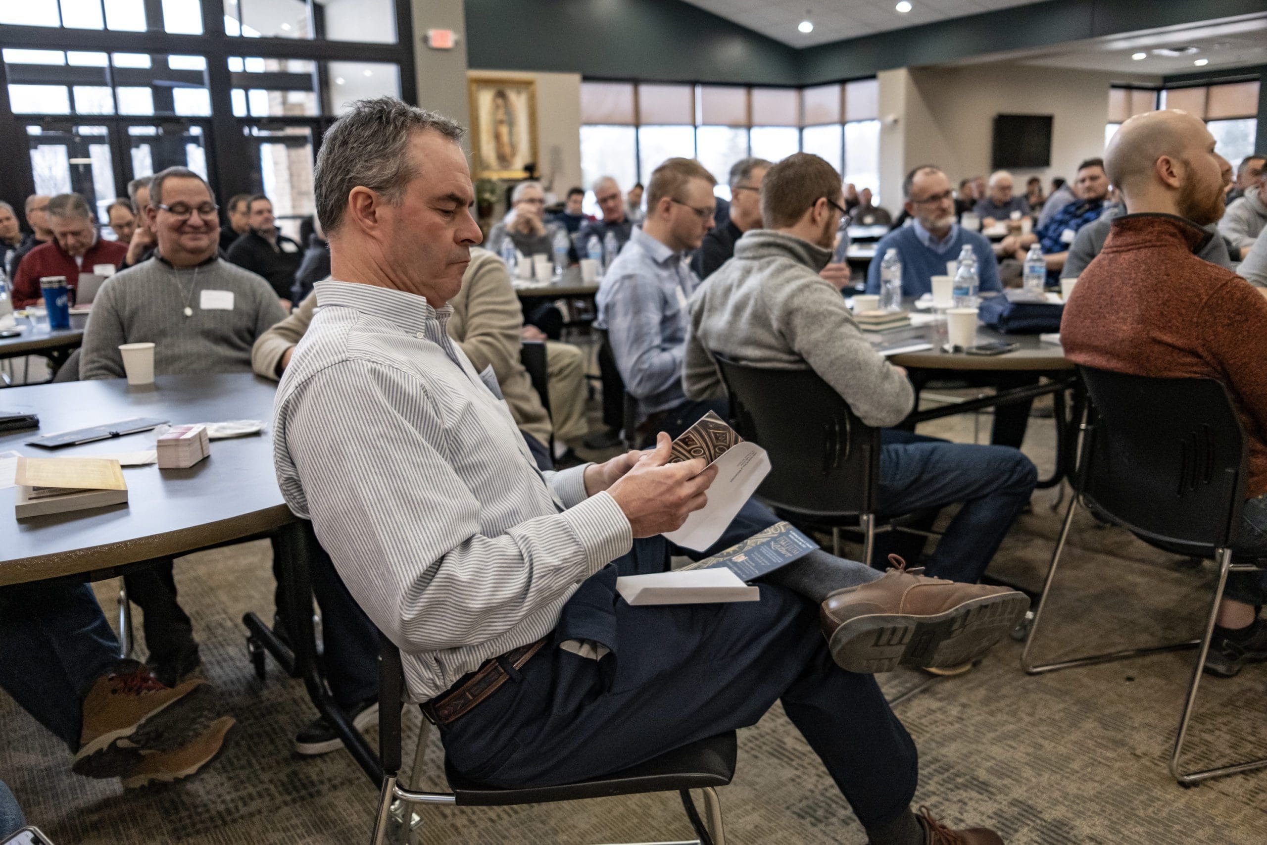 Former Major League Baseball all-star Mike Sweeney was the keynote speaker on Saturday, Jan. 14, as more than 170 men from 62 parishes gathered at St. Leonard Parish for the first of three pre-conference leadership meetings for Men of Christ, which will be held at many satellite locations on Saturday, March 11. Archbishop Jerome E. Listecki opened the meeting and delivered a special commissioning blessing over the men. Men of Christ is anticipating a draw of more than 5,000 men at this year’s conference, a hybrid event at super sites and parishes nationwide. Register your parish to host the conference, or register at a parish near you at MenofChrist.net. (Photos by Jim Michaletz)