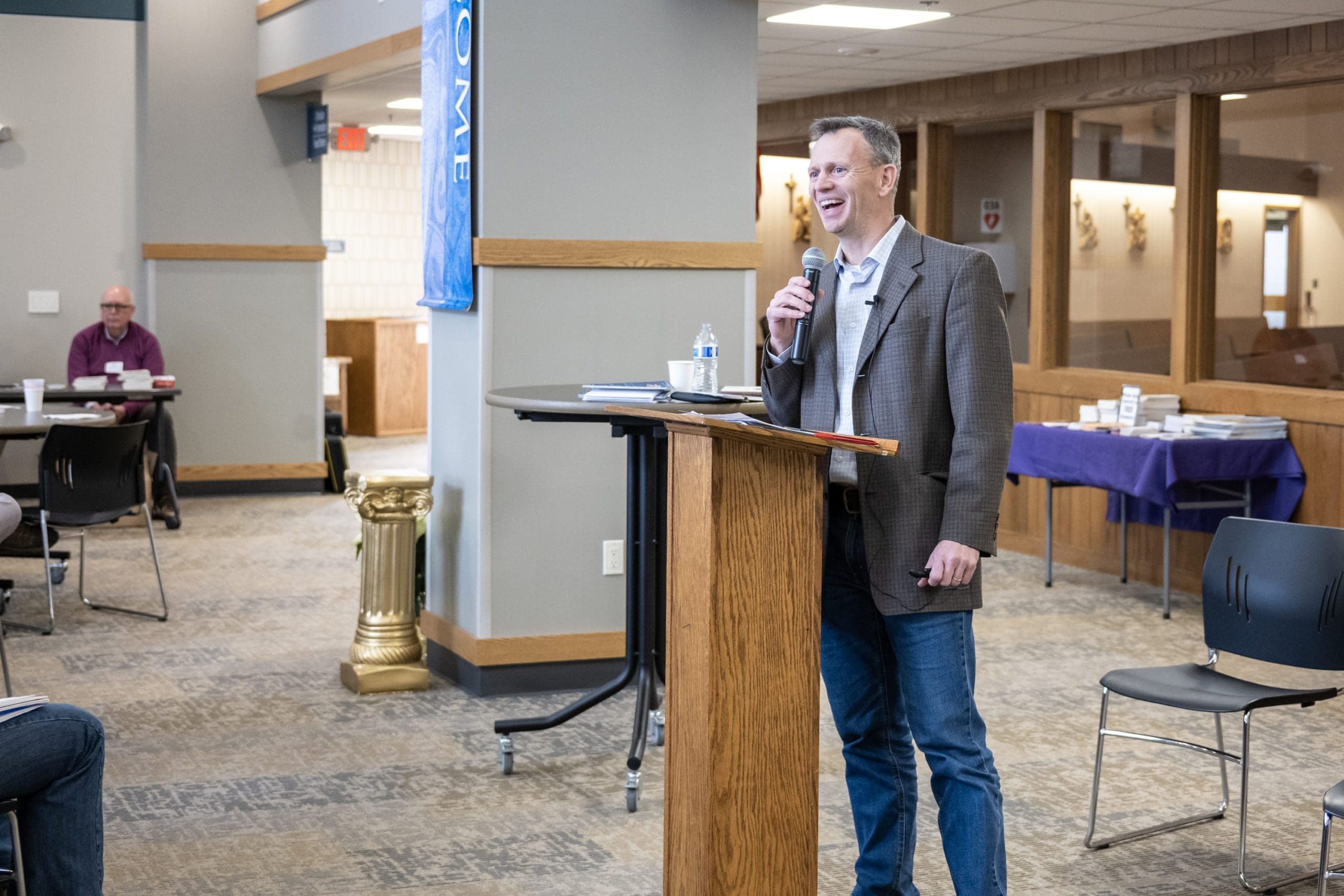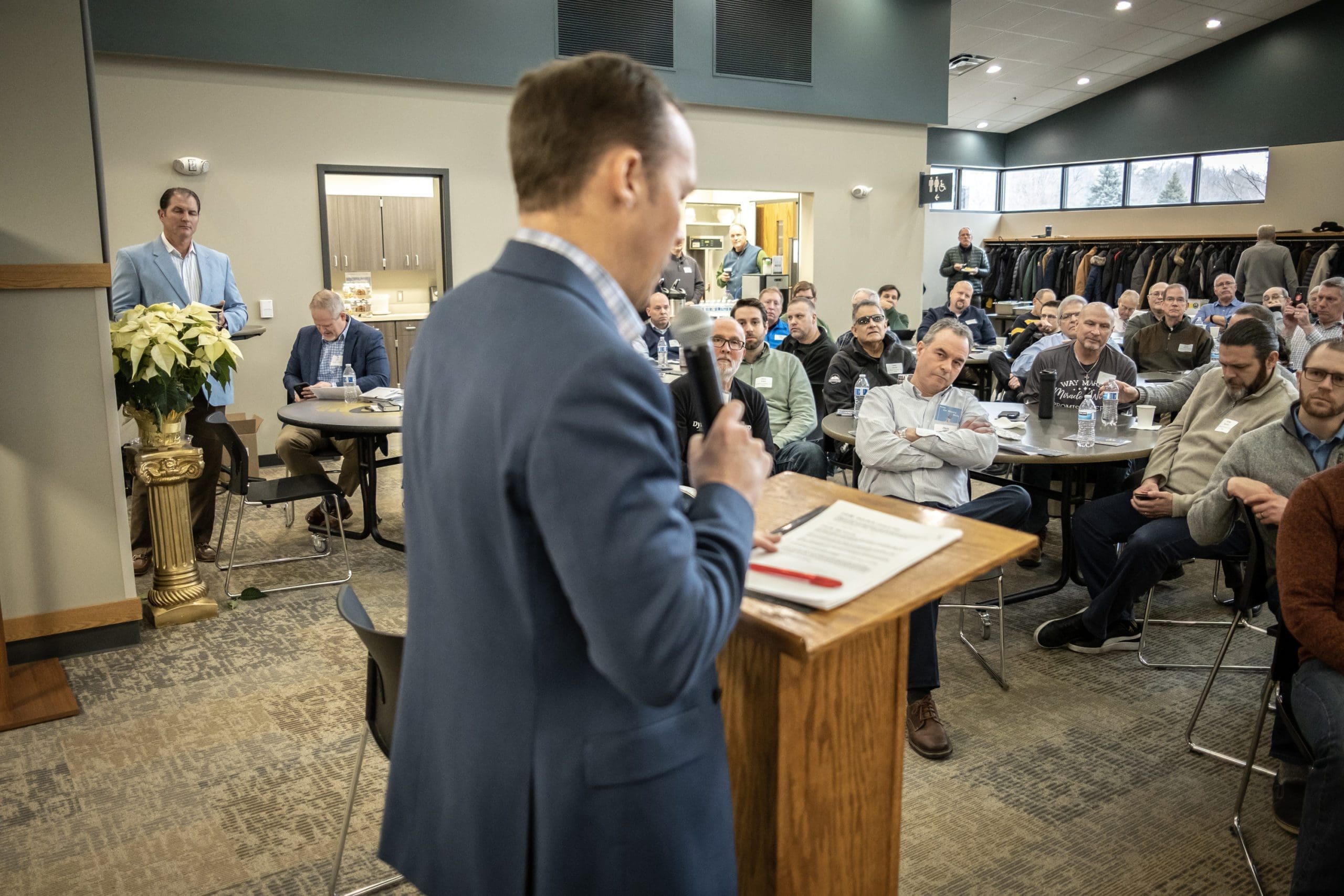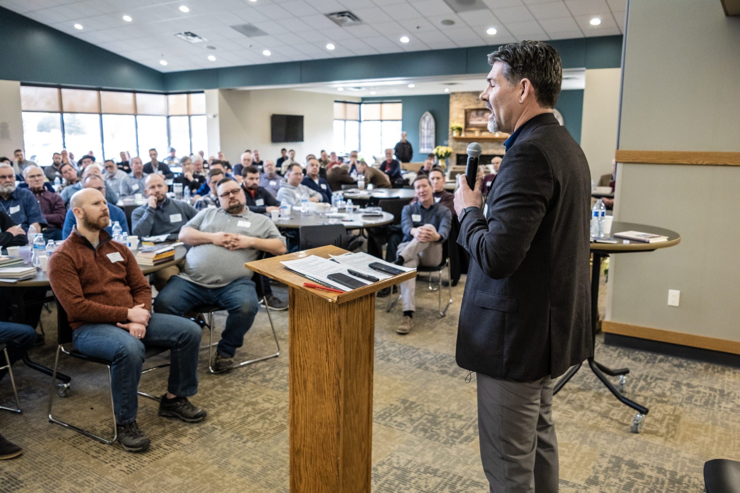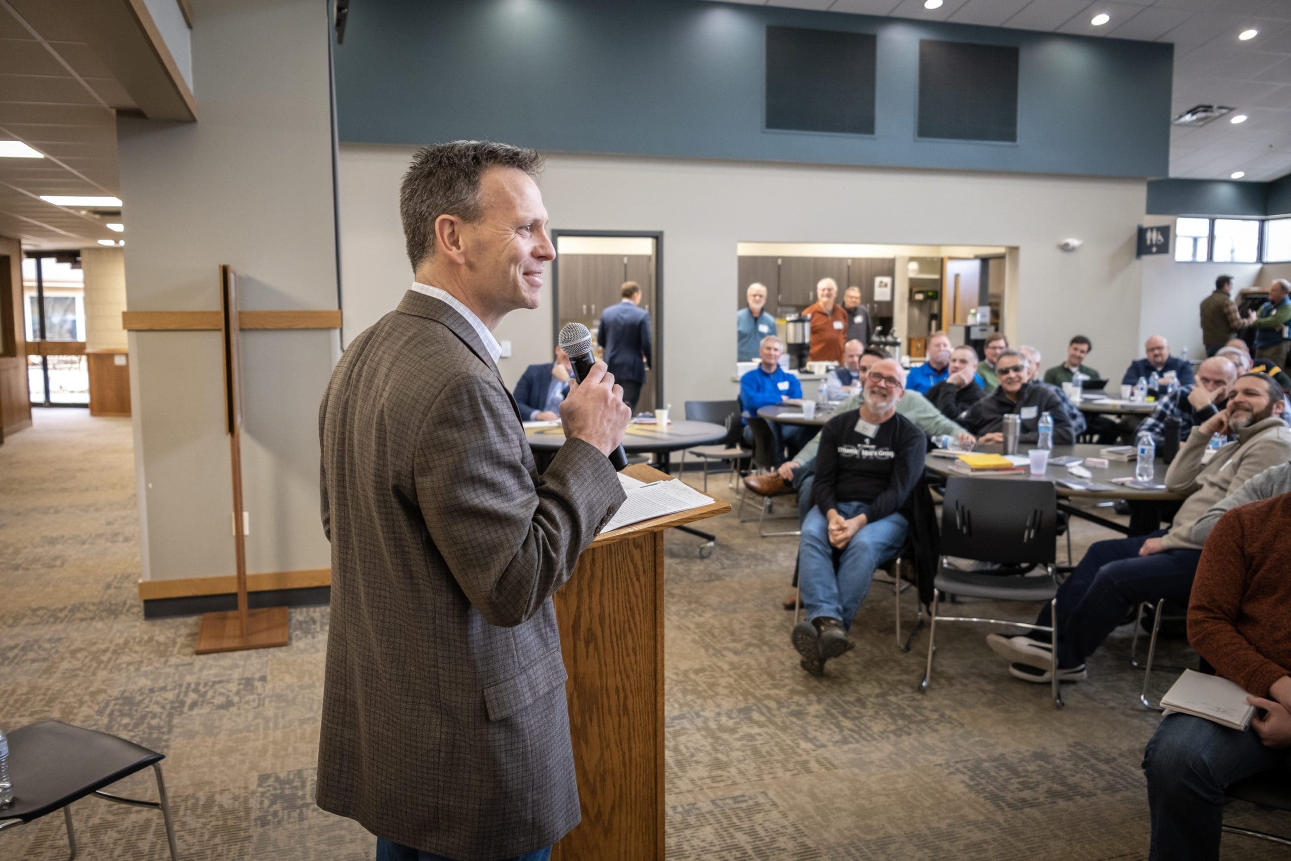 Former Major League Baseball all-star Mike Sweeney was the keynote speaker on Saturday, Jan. 14, as more than 170 men from 62 parishes gathered at St. Leonard Parish for the first of three pre-conference leadership meetings for Men of Christ, which will be held at many satellite locations on Saturday, March 11. Archbishop Jerome E. Listecki opened the meeting and delivered a special commissioning blessing over the men. Men of Christ is anticipating a draw of more than 5,000 men at this year’s conference, a hybrid event at super sites and parishes nationwide. Register your parish to host the conference, or register at a parish near you at MenofChrist.net. (Photos by Jim Michaletz)