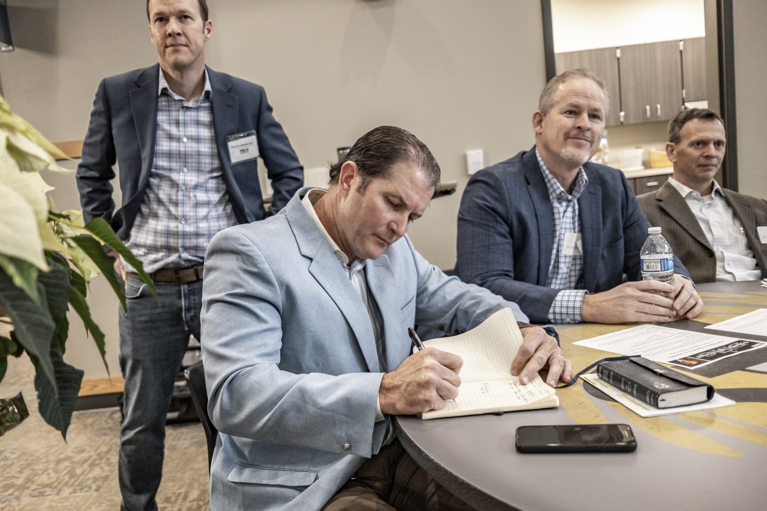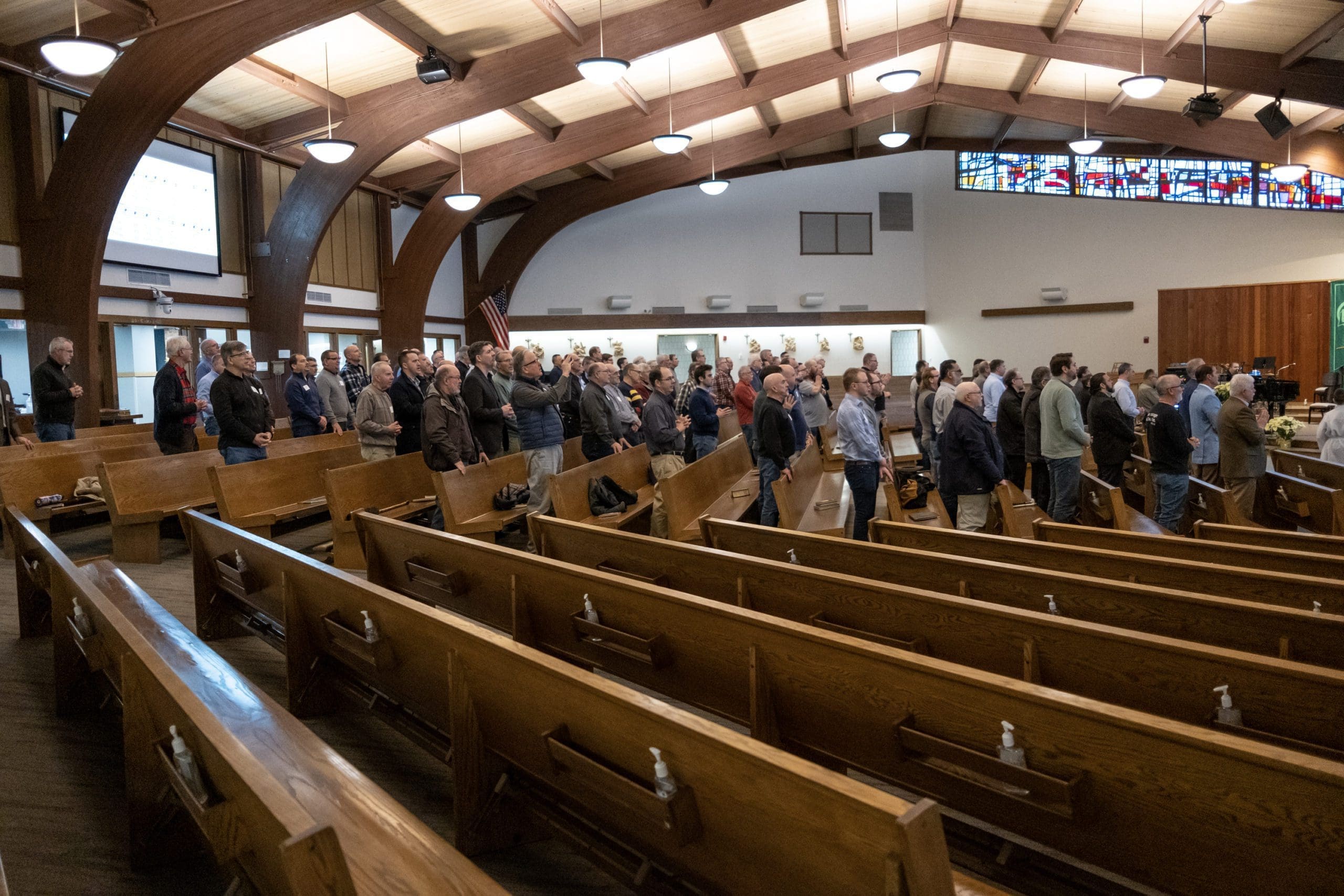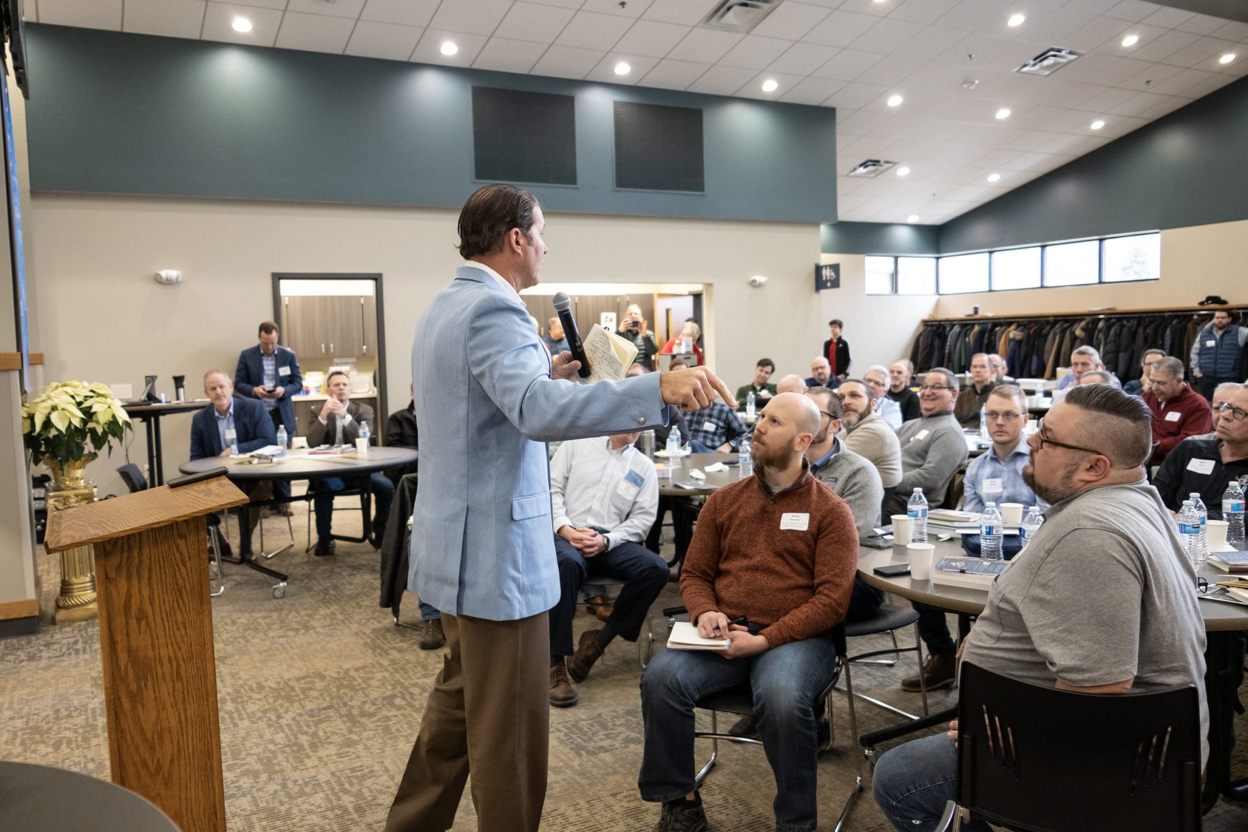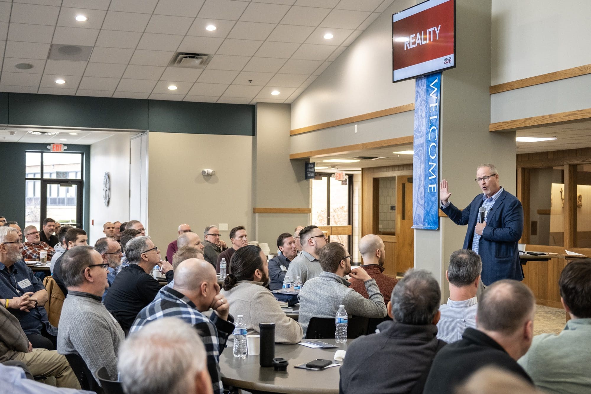 Former Major League Baseball all-star Mike Sweeney was the keynote speaker on Saturday, Jan. 14, as more than 170 men from 62 parishes gathered at St. Leonard Parish for the first of three pre-conference leadership meetings for Men of Christ, which will be held at many satellite locations on Saturday, March 11. Archbishop Jerome E. Listecki opened the meeting and delivered a special commissioning blessing over the men. Men of Christ is anticipating a draw of more than 5,000 men at this year’s conference, a hybrid event at super sites and parishes nationwide. Register your parish to host the conference, or register at a parish near you at MenofChrist.net. (Photos by Jim Michaletz)