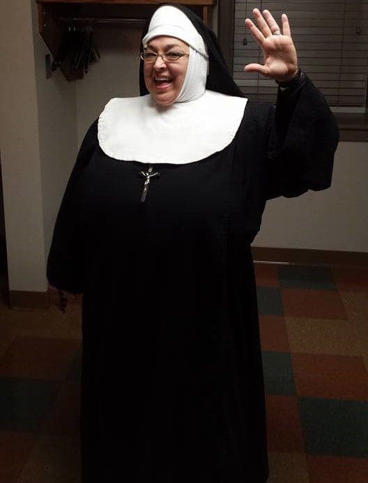 As Sister, Alioto fully embodies an old-school nun in her full black-and-white habit with a large crucifix, wimple and veil, as she dispenses black-and-white truths of the faith. She enjoys the role and admits that one of the best aspects of her performances is the variety of the audiences in the interactive production.