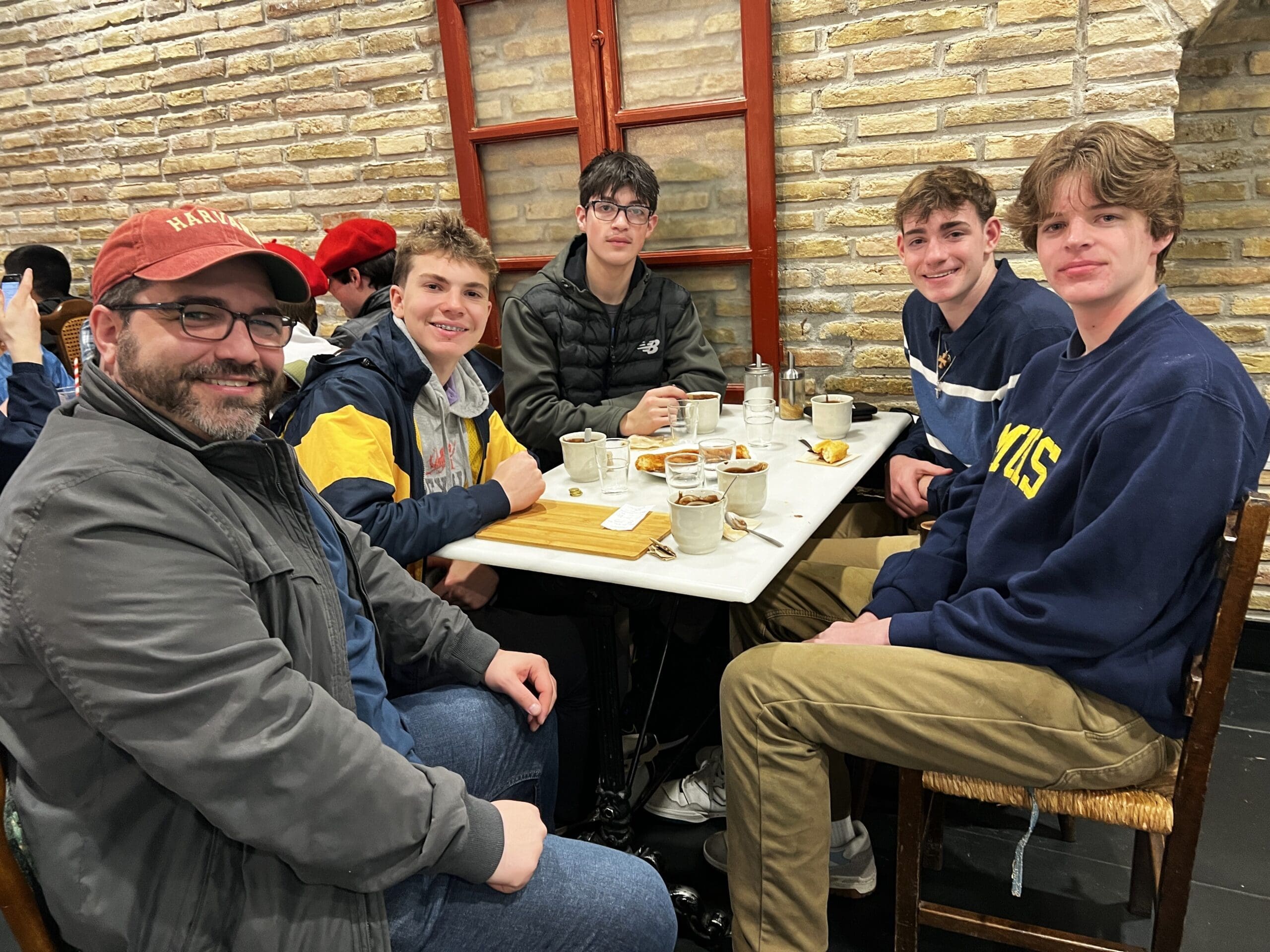 Marquette University High School teacher Tom Jackson having hot cocoa in Barcelona with some of his students. (Submitted photo)