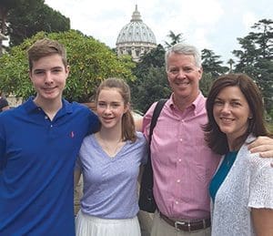 Jim and Maureen Stern, members of Christ King Parish, Wauwatosa, are co-chairs of the Archdiocese of Milwaukee’s 2016 Catholic Stewardship Appeal. They are pictured in Vatican City with their children, John, 16, a sophomore at Marquette University High School, and their daughter, Mary Elizabeth, 14, an eighth-grader at Christ King School. (Submitted photo courtesy of the Stern family)“As a six-year member of the Archdiocesan Finance Council, I have been able to see the money donated to the CSA being used so efficiently and have been privileged to watch the leadership of Archbishop (Jerome E.) Listecki,” he said. “We know that the appeal has been fairly stagnant during the bankruptcy, but we have seen how much work those in the archdiocese do. They have been asked to do more and more with the same or less money. These are dedicated people doing great work for the Archdiocese of Milwaukee and they deserve our funding.”