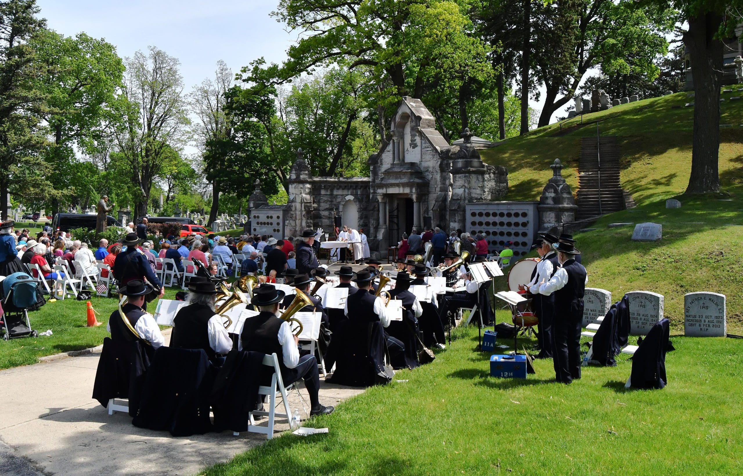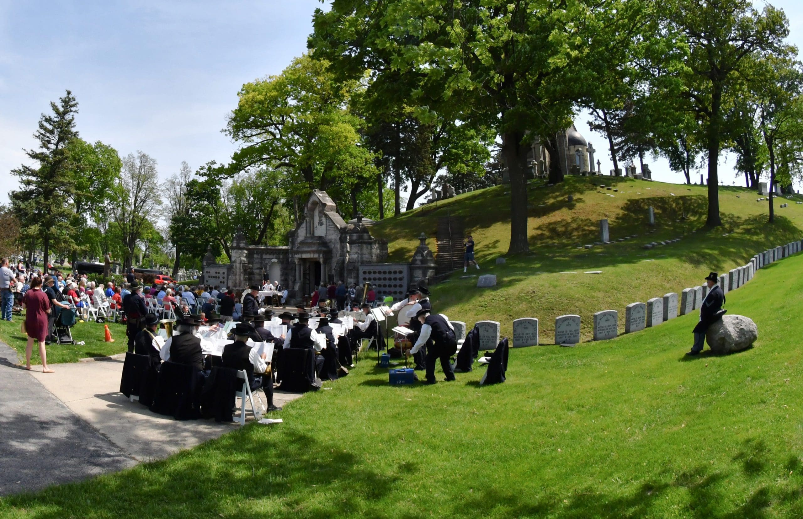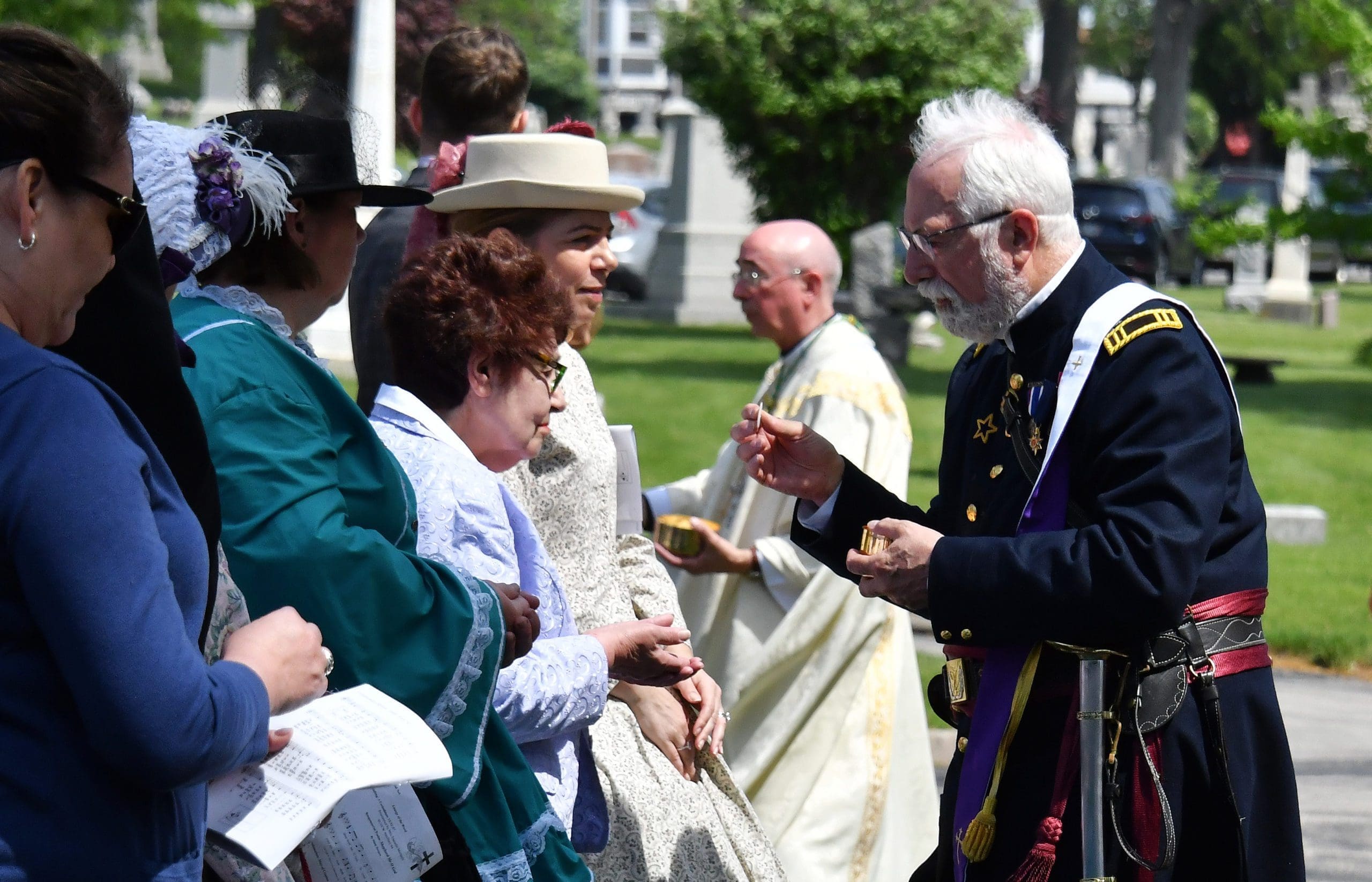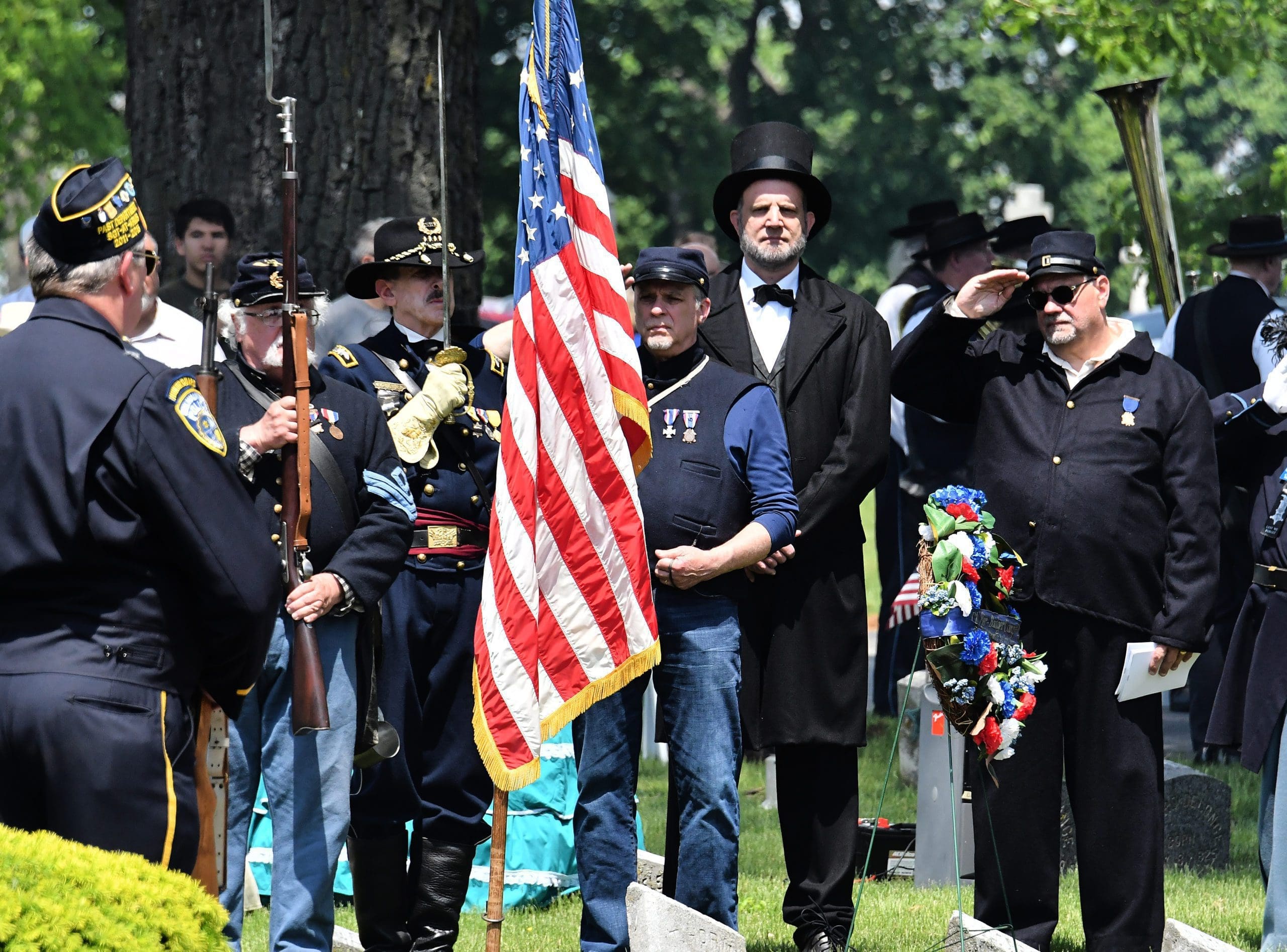 After the Mass, the crowds processed through the cemetery singing the Battle Hymn of the Republic, stopping for a patriotic ceremony a short distance away. Nicholas Bur gave an address as President Abraham Lincoln, and Dcn. Collins read the Grand Army of the Republic Order No. 11, which officially established Memorial Day in 1868.