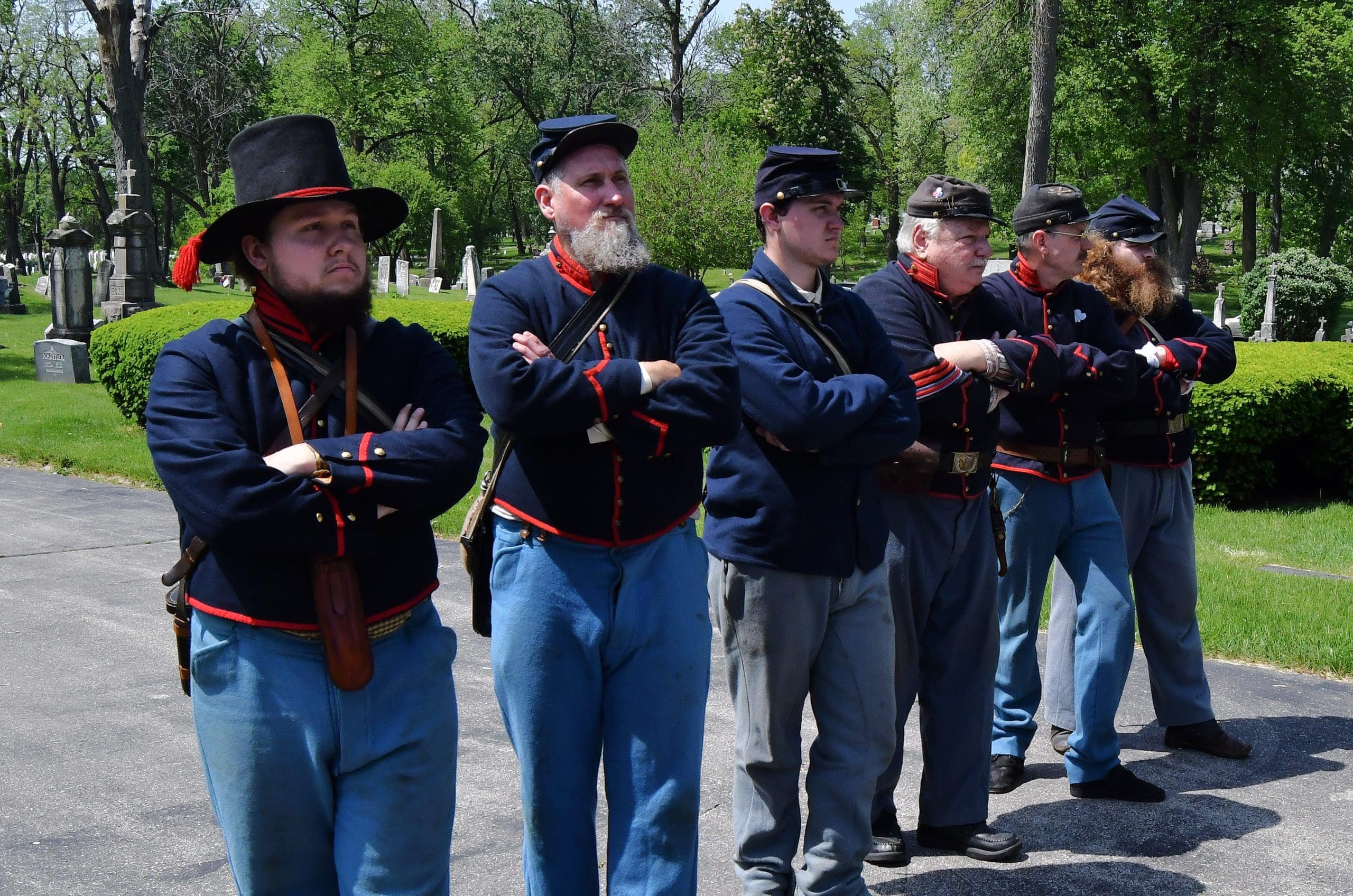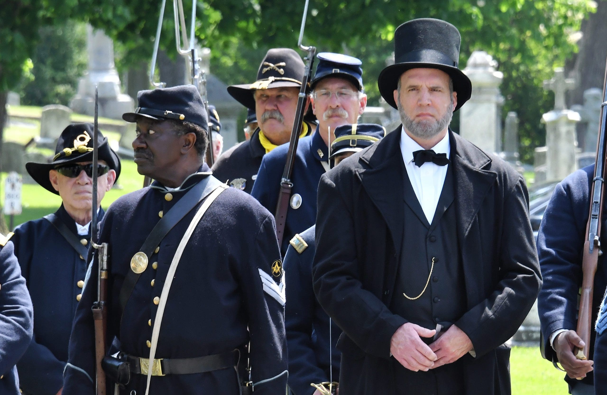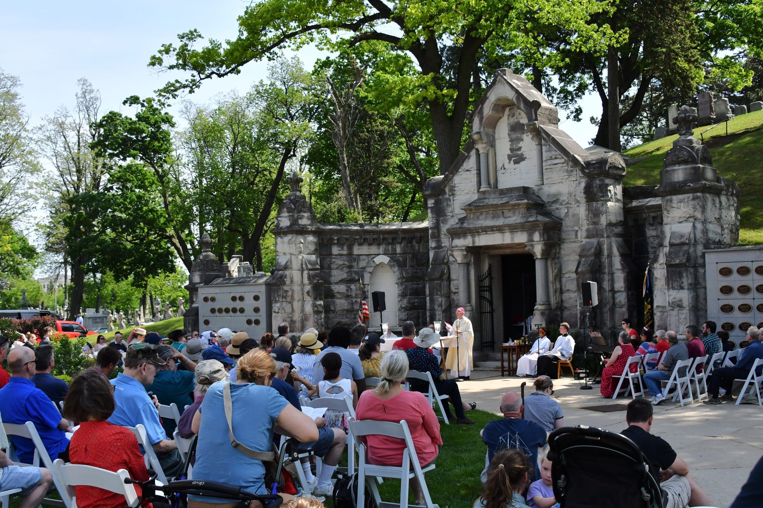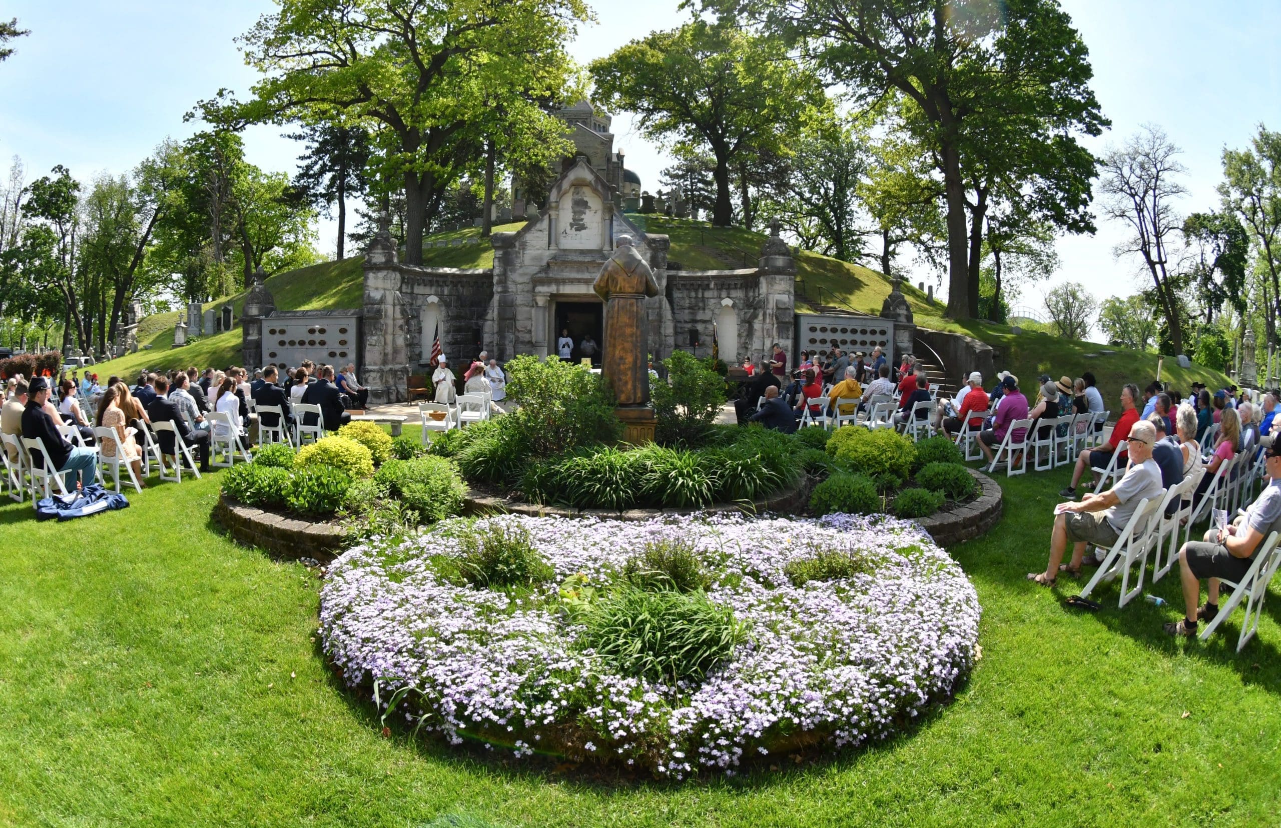 After the Mass, the crowds processed through the cemetery singing the Battle Hymn of the Republic, stopping for a patriotic ceremony a short distance away. Nicholas Bur gave an address as President Abraham Lincoln, and Dcn. Collins read the Grand Army of the Republic Order No. 11, which officially established Memorial Day in 1868.