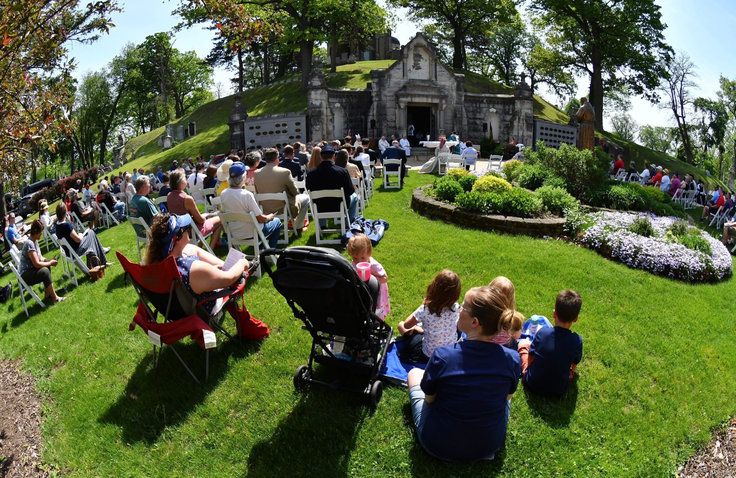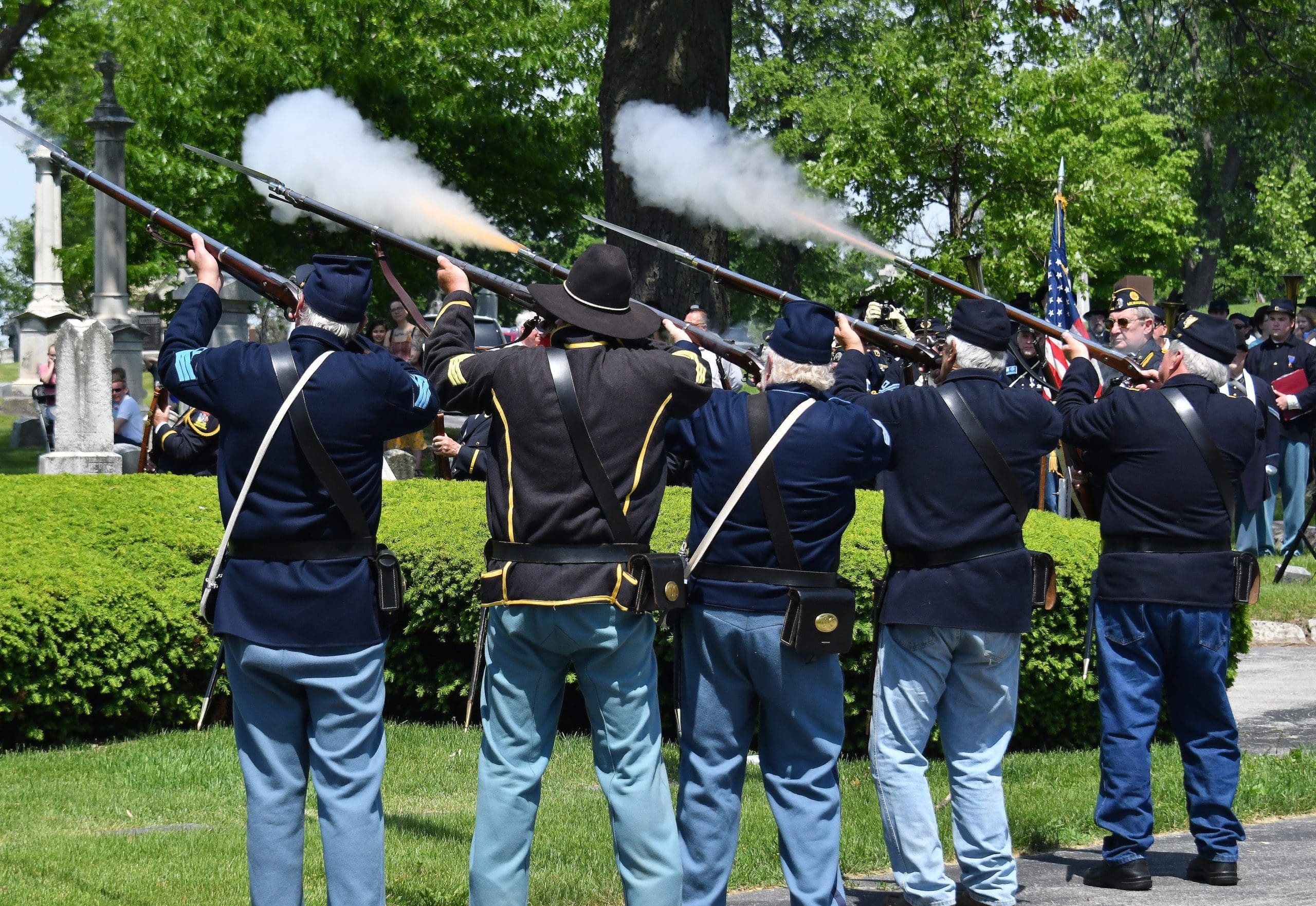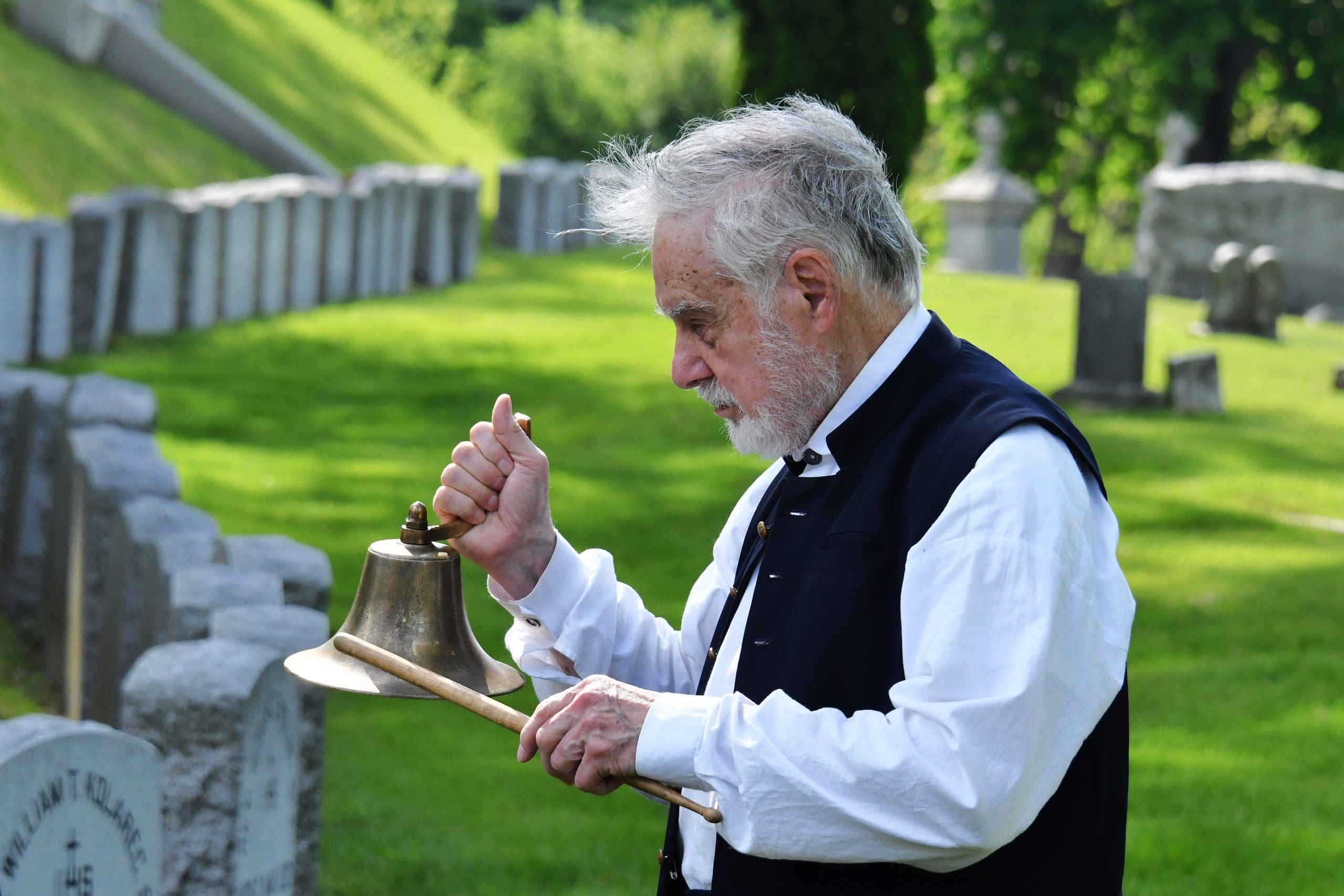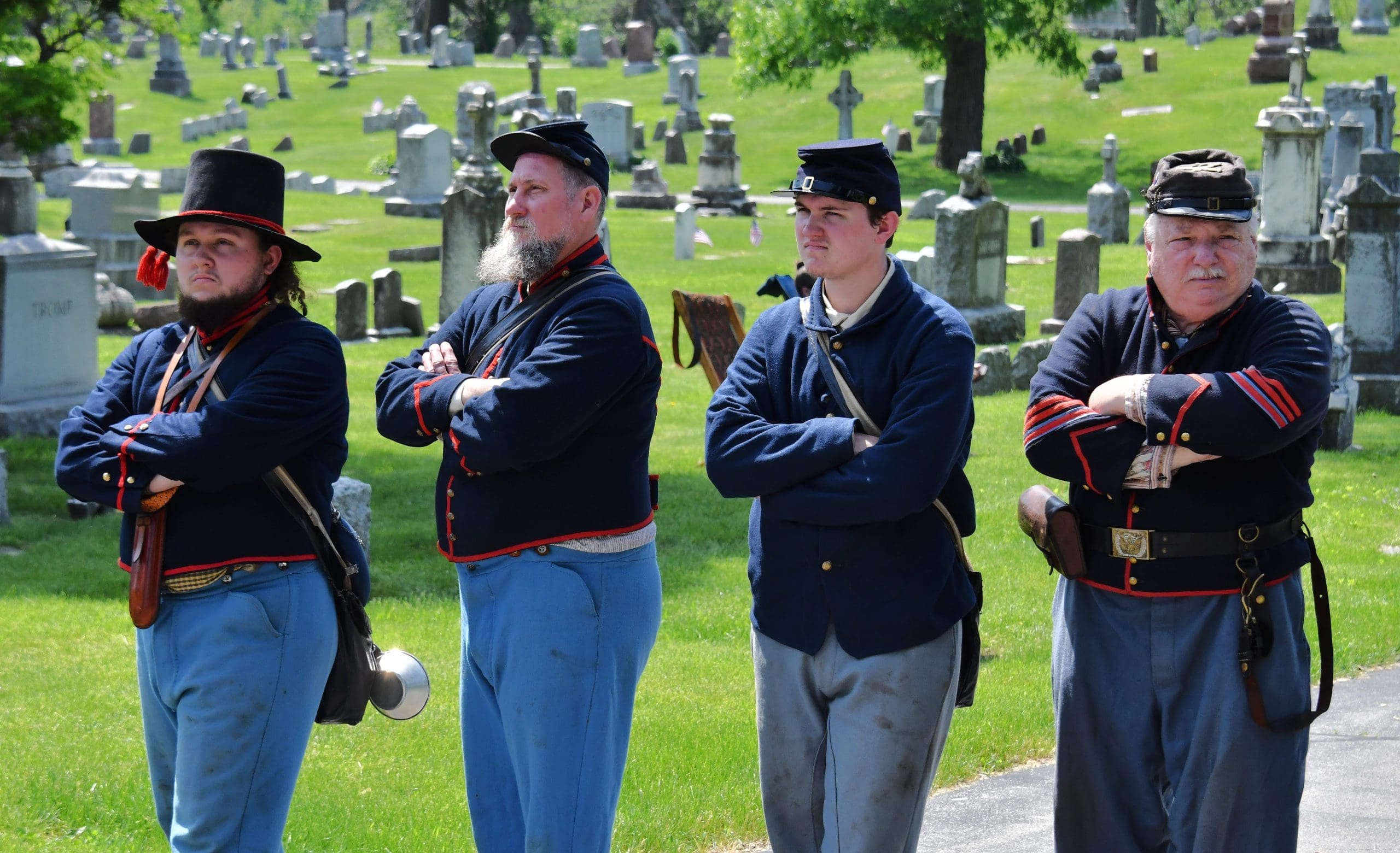 After the Mass, the crowds processed through the cemetery singing the Battle Hymn of the Republic, stopping for a patriotic ceremony a short distance away. Nicholas Bur gave an address as President Abraham Lincoln, and Dcn. Collins read the Grand Army of the Republic Order No. 11, which officially established Memorial Day in 1868.