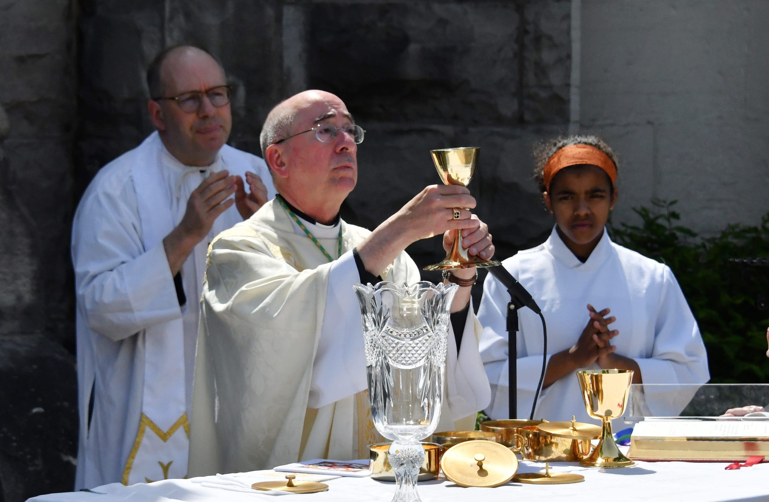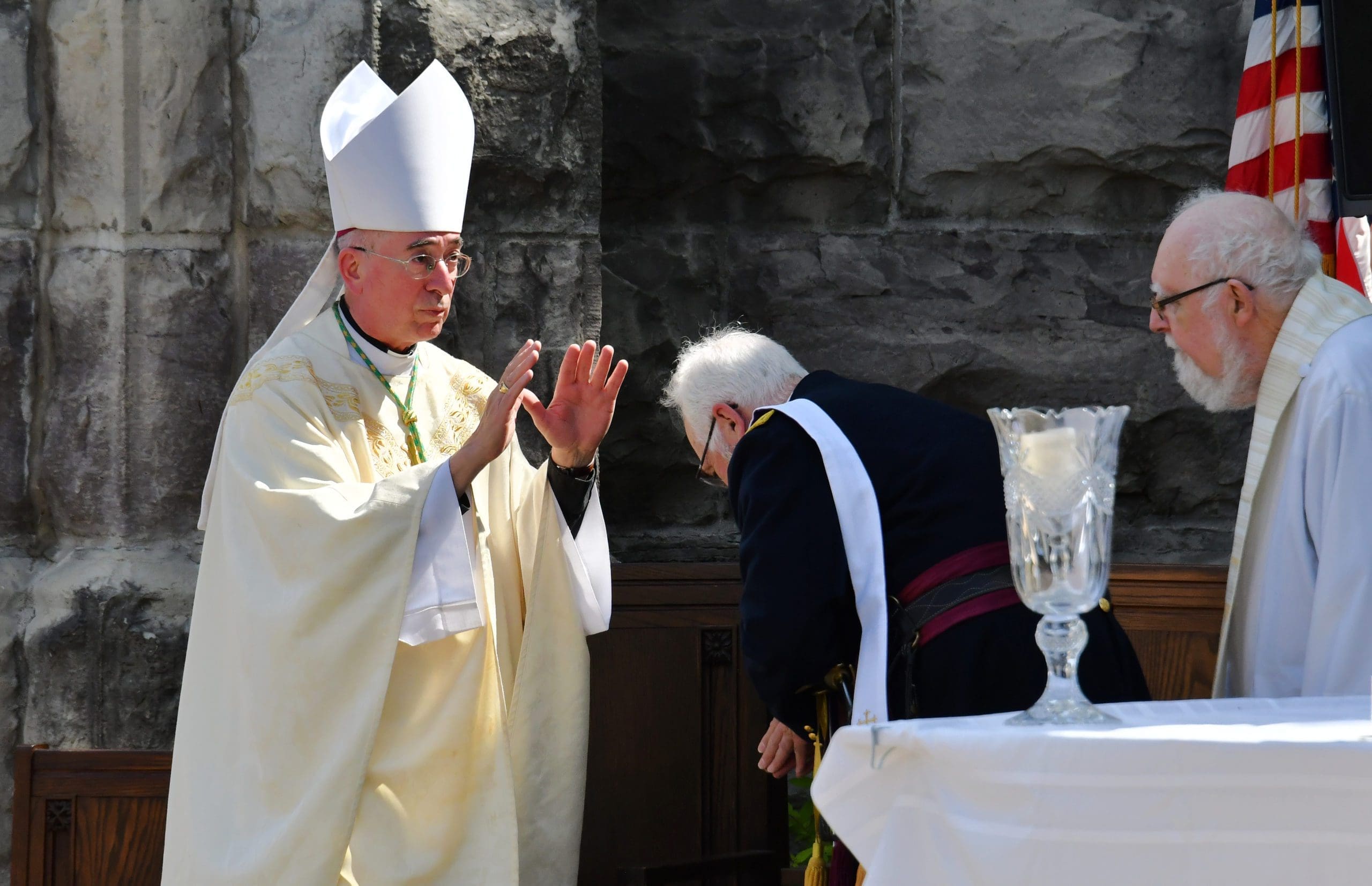 The Mass was presided over by Bishop James T. Schuerman, with Fr. Reed Mungovan, S.D.S., from Mother of Good Council, Fr. Patrick Nelson, S.D.S., from St. Margaret Mary, and senior priest Fr. Richard Aiken concelebrating.