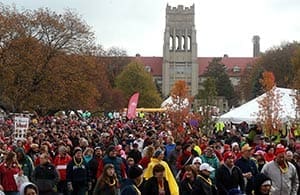 Though the early morning was unsurprisingly chilly and occasionally rainy, enthusiasm was high as more than 7,000 people poured onto the Mount Mary campus, many arriving in groups shepherded by banner-wielding principals.