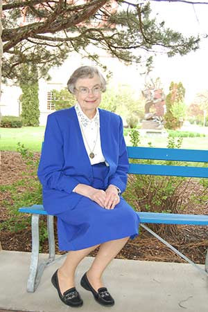 School Sister of Notre Dame Ellen Lorenz, seated on a bench on the grounds of Mount Mary University, Milwaukee, on May 15, delivered the commencement address to the Class of 2014 and was awarded the university’s first honorary degree last weekend. (Catholic Herald photo by Ricardo Torres)Sr. Ellen was the first recipient of an honorary degree from the university at the graduation. She also delivered the commencement address to this year’s graduation class of nearly 300 women.