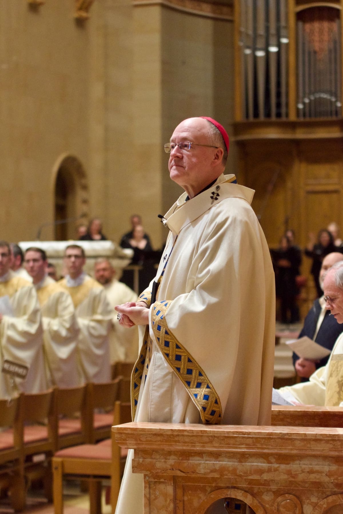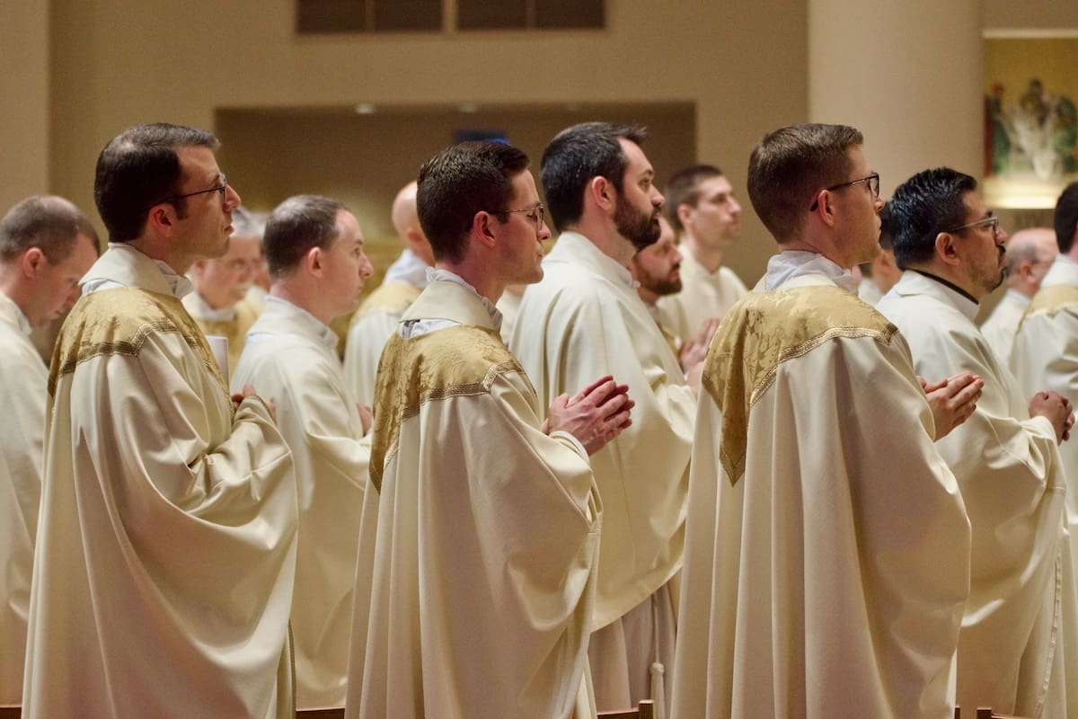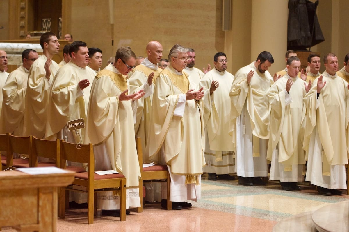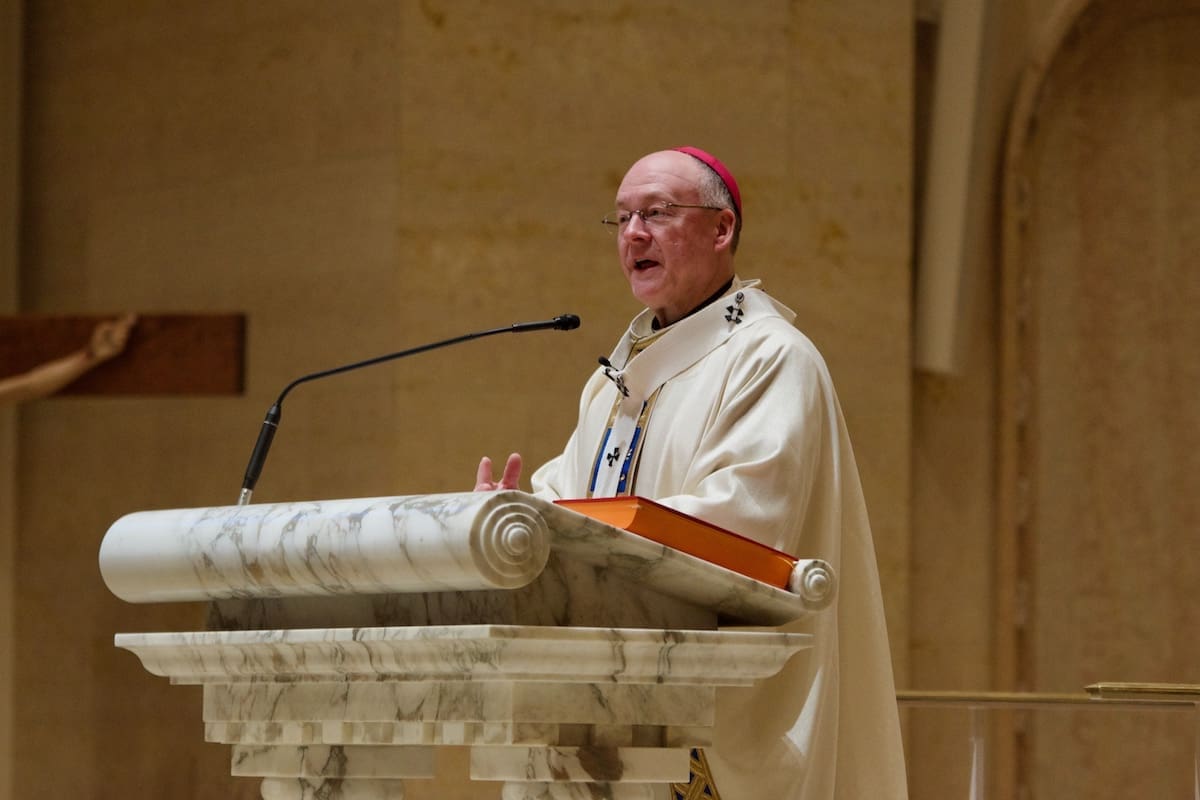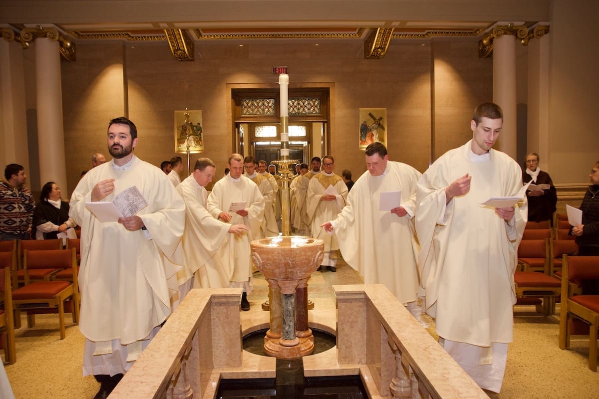 Archbishop Jeffrey S. Grob presided as Fr. Edward Sanchez was formally installed March 24 as rector of the Cathedral of St. John the Evangelist, affirming his leadership of the archdiocese’s Mother Church and its downtown mission. (Photo by seansmithphotos.com)