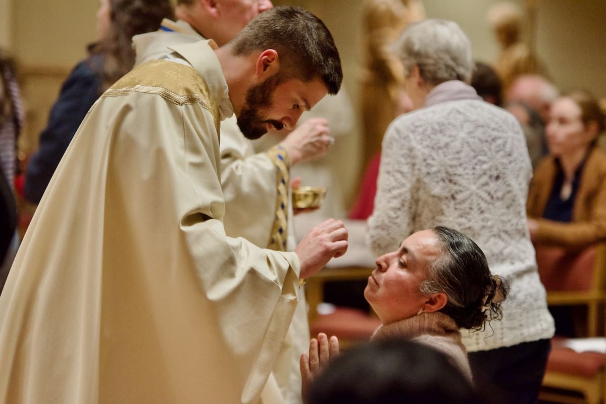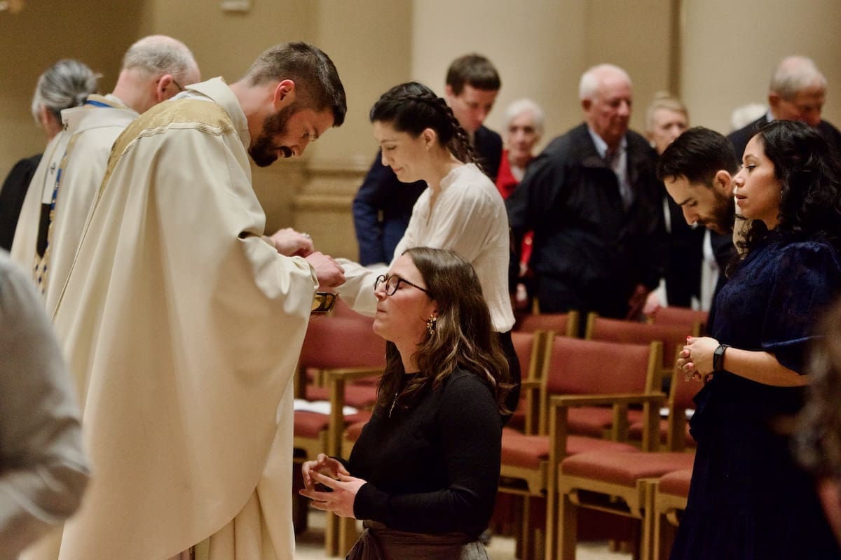 Fr. Sanchez estimates that the Cathedral welcomes close to 700 individuals at weekend Masses. They are bankers from the East Side, mechanics from working-class neighborhoods, visitors from all over the world — and he is struck by how they gather, as one, “under the cross, under our faith.”