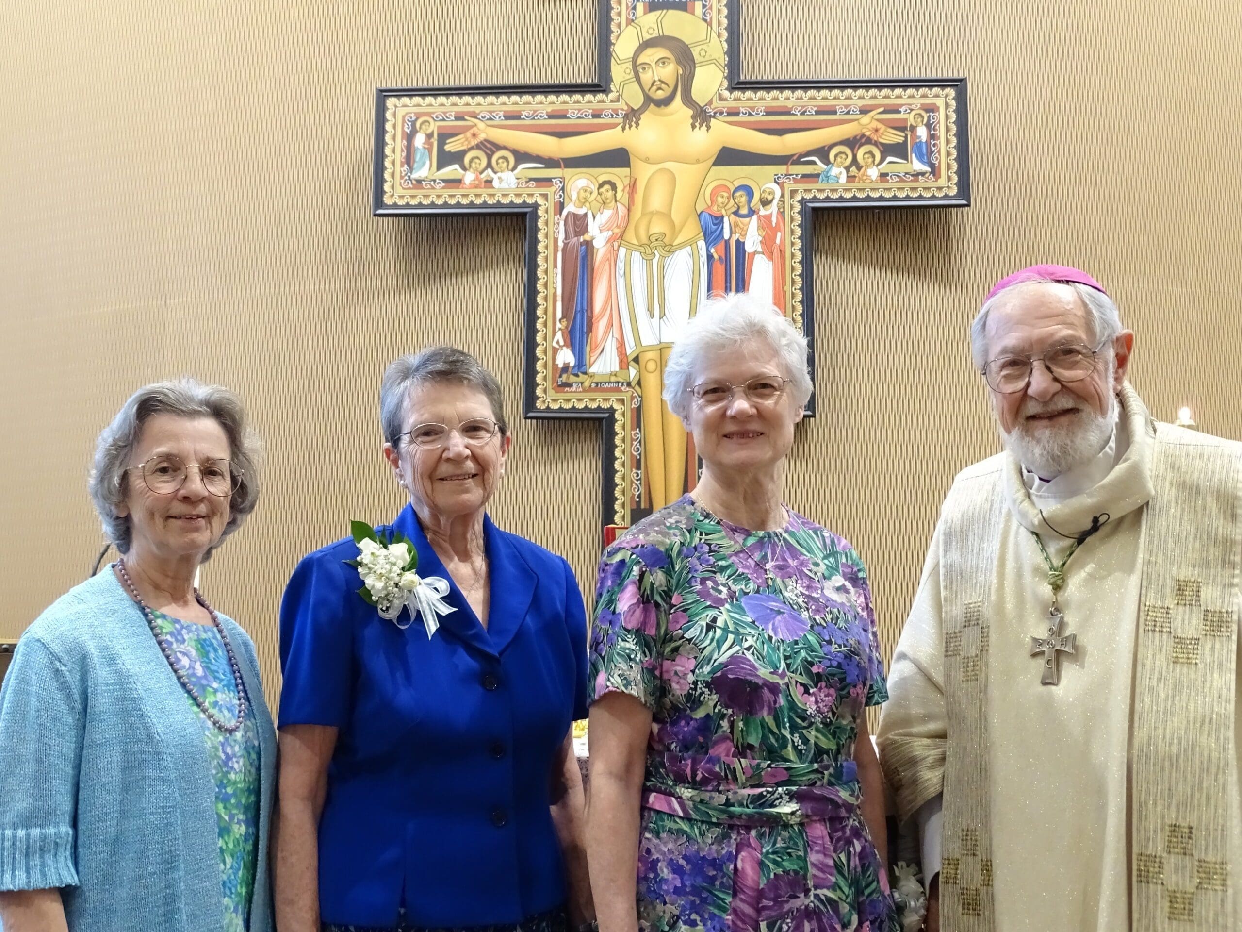 Bishop Emeritus Richard J. Sklba with the new Sisters of St. Francis of Assisi Leadership Team, (from left) Sr. Sylvia Anne Sheldon, Sr. Joanne Schatzlein and Sr. Charlotte Roost. (Submitted photo)