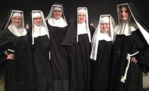 The visit was in preparation for the school’s staging of the musical comedy “Nunsense,” Oct. 23-26.
