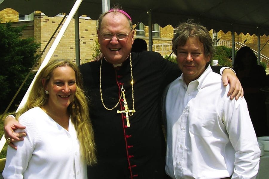 Kathy Suhr (left) and her husband, Bill (right), pose with Cardinal Dolan. Kathy, the owner of the Marian Center, is need of a kidney transplant and is looking for a donor. (Photos courtesy of Bill Suhr)