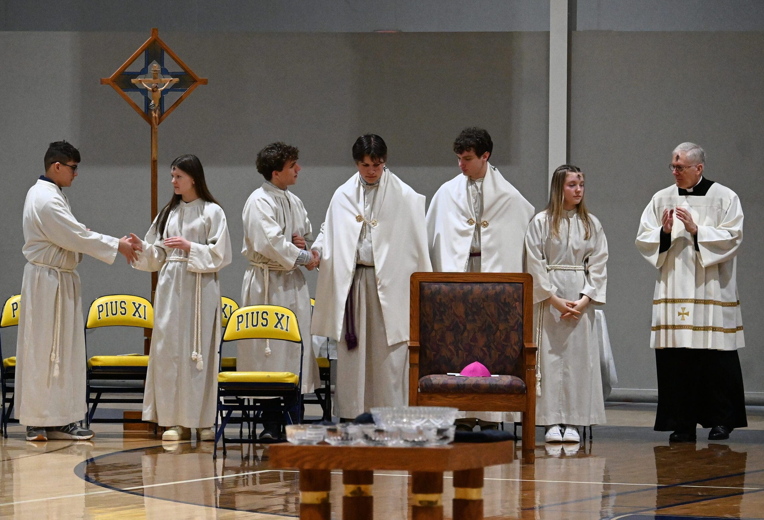 Archbishop Jeffrey S. Grob celebrates Ash Wednesday Mass at Pius XI Catholic High School in Milwaukee on March 5. (Photos by David Bernacchi)
