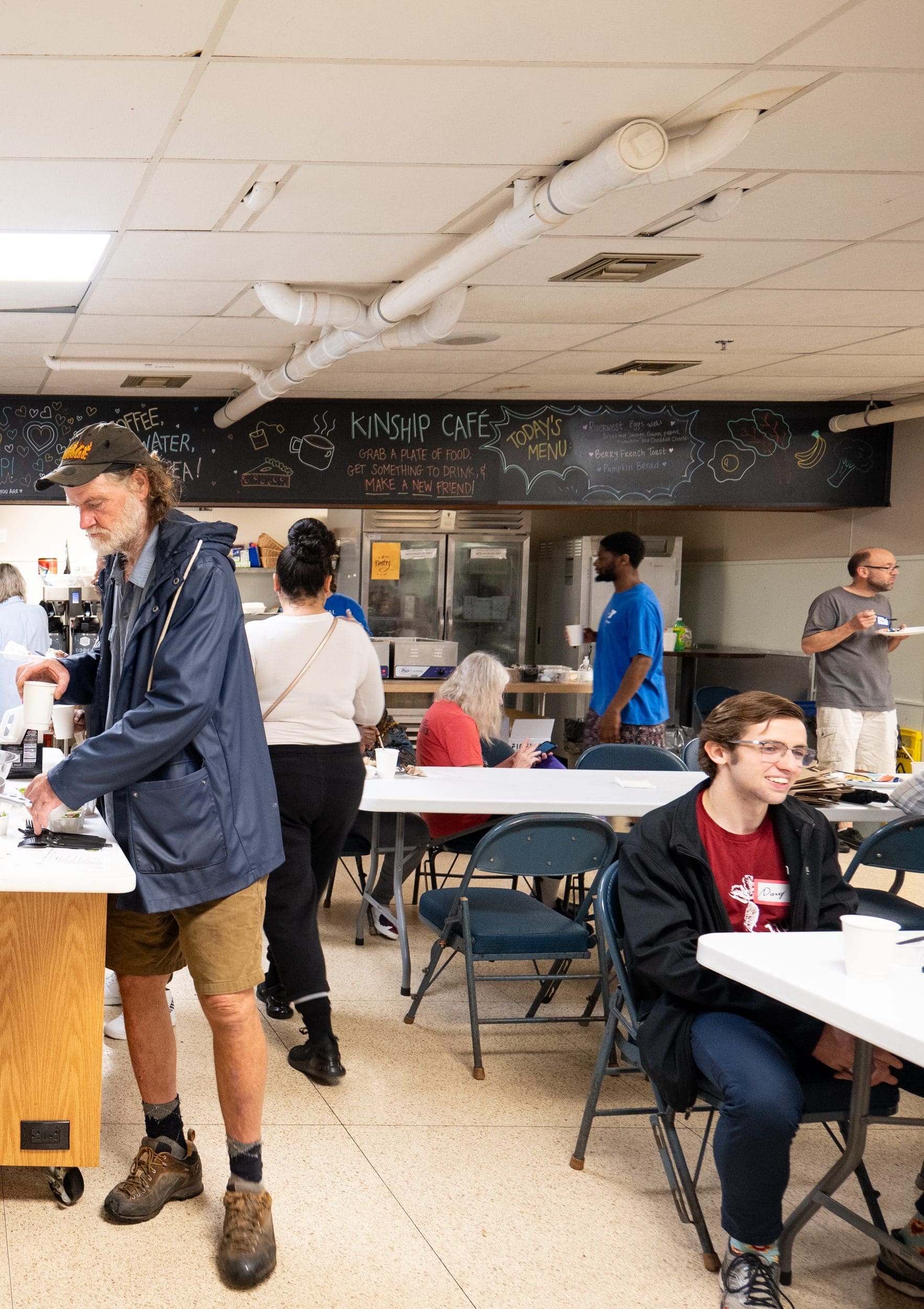 Food distribution begins at 8:30 a.m., but a hot breakfast begins around 8. The breakfast is open to shoppers and volunteers and is very popular for those wanting some company in the morning.