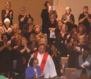 Sr. Callista Robinson, a Franciscan Sister of Little Falls, Minn., and a member of St. Martin de Porres Parish, Milwaukee, introduces Redemptorist Fr. Maurice Nutt before his keynote address.