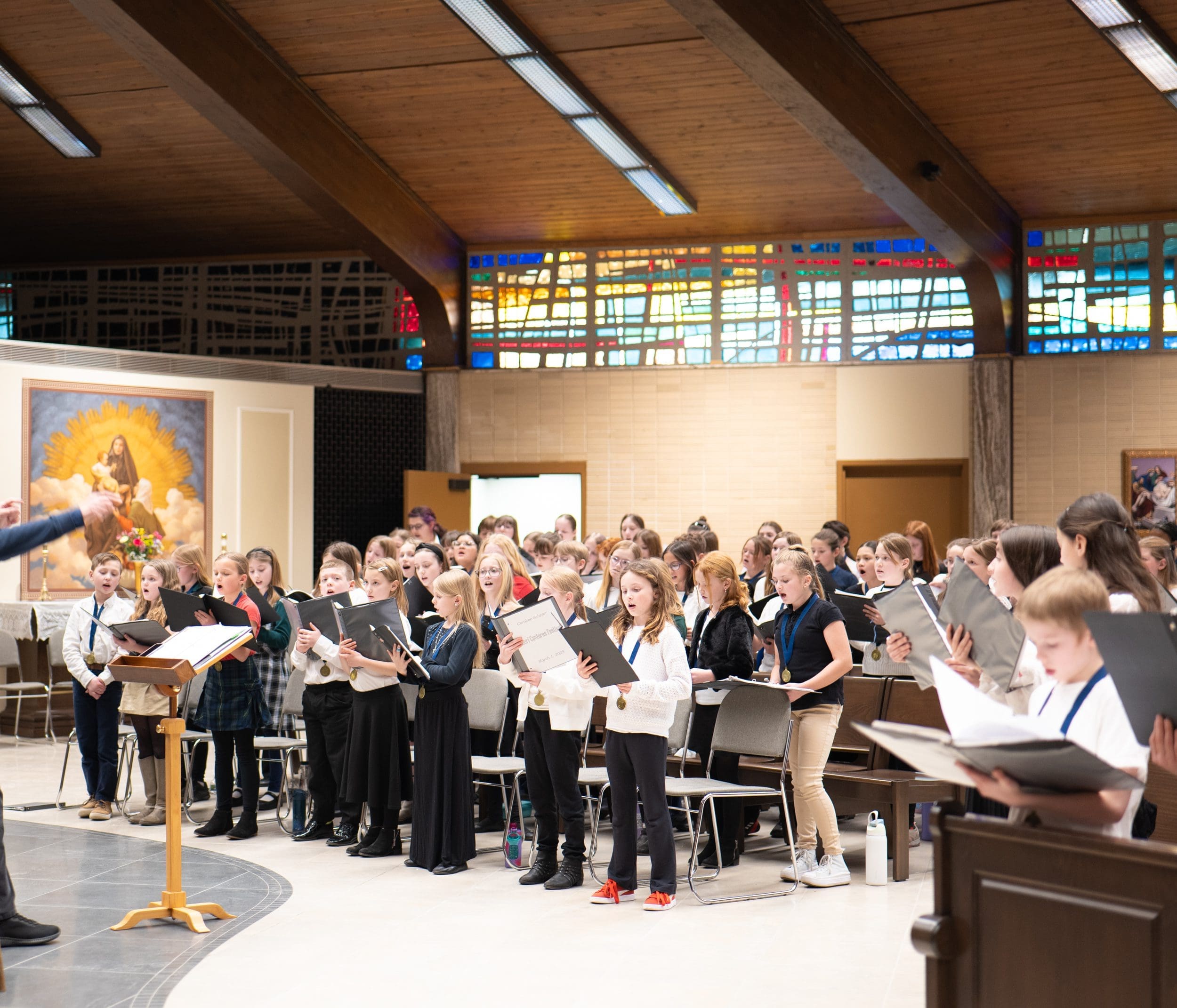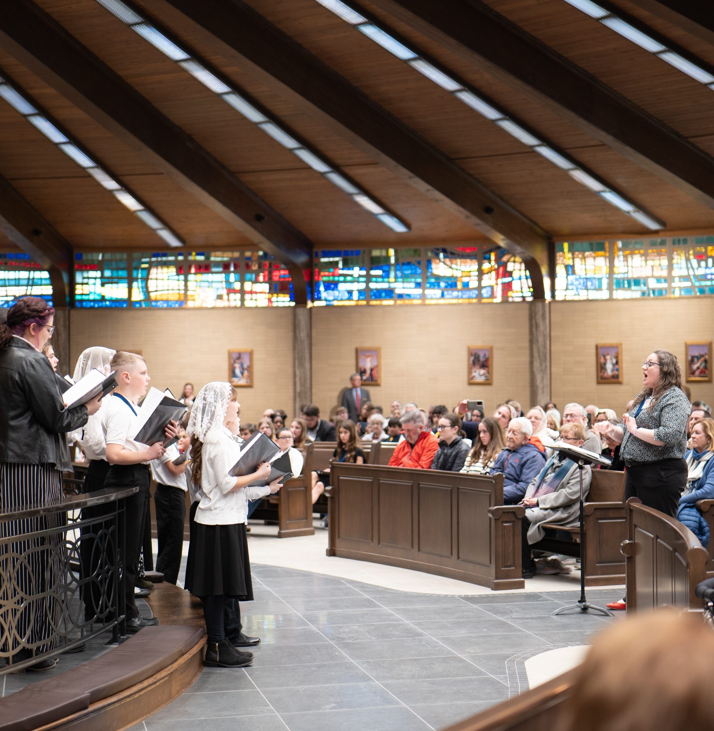 St. Frances Cabrini, West Bend, hosted the Pueri Cantores regional youth festival on Saturday, March 1. The youth choral organization’s workshop day concluded with Mass celebrated by Archbishop Jeffrey S. Grob. (Photos by Greta Taxis)