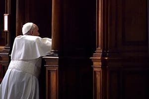 Pope Francis goes to confession during a Lenten penance service in St. Peter’s Basilica at the Vatican March 13, 2015. As part of the Year of Mercy, the pope has asked dioceses throughout the world to observe “24 Hours with the Lord” with an emphasis on the sacrament of reconciliation. (CNS photo/Stefano Spaziani, pool)The focus of “24 Hours for the Lord” is the invitation and opportunity for Catholics to receive the sacrament of reconciliation.