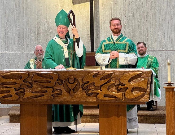Fr. John LoCoco is installed as pastor of St. John Vianney, Brookfield, at a Mass with Archbishop Jeffrey S. Grob on July 27. Fr. LoCoco had served as parish administrator since August 2024. (Submitted photo).