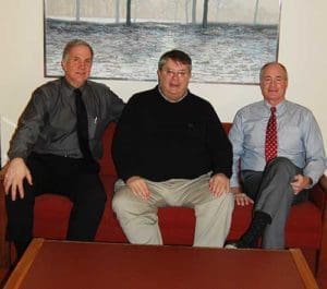 Former Catholic Conference basketball players Tom Griffey of Pius XI High School, left to right, Tim Theisen of St. Thomas More High School and Mike Schramka of Messmer High School are pictured at the Cousins Center, St. Francis, Feb. 6. (Catholic Herald photo by Joe Poirier)
