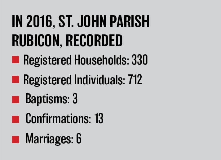 “We have wonderful fall festivals every fourth Sunday in September,” said Margaret Mary Schmidt, who was born in Rubicon in 1940 and has been part of St. John’s her entire life. “The parish people really work hard with things like the Baskets of the Heart. Last year, we had 75 baskets with very good items, including a $50 bill in some of them. We also have donut and pizza sales twice a year with 5-6,000 handmade pizzas. Everybody just works well together.