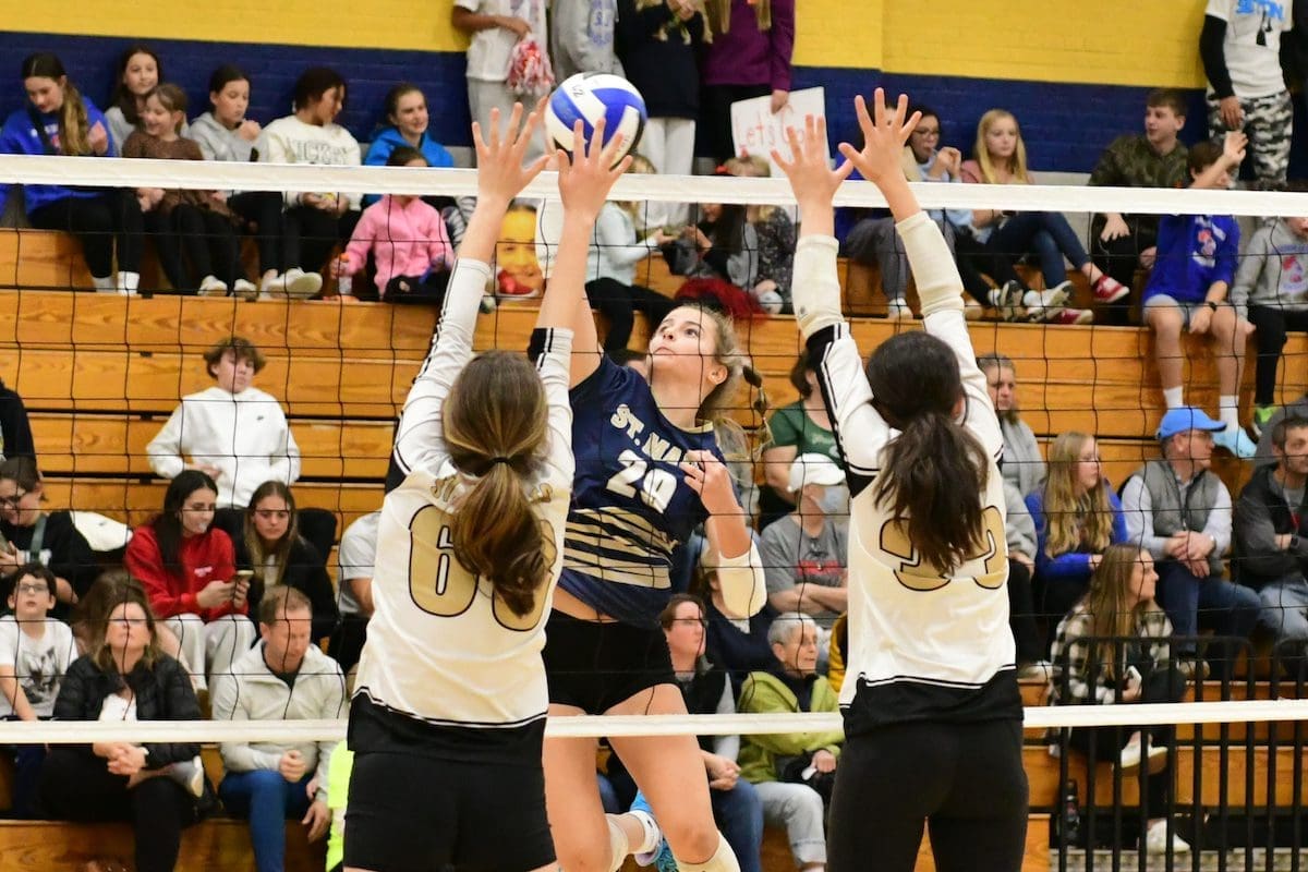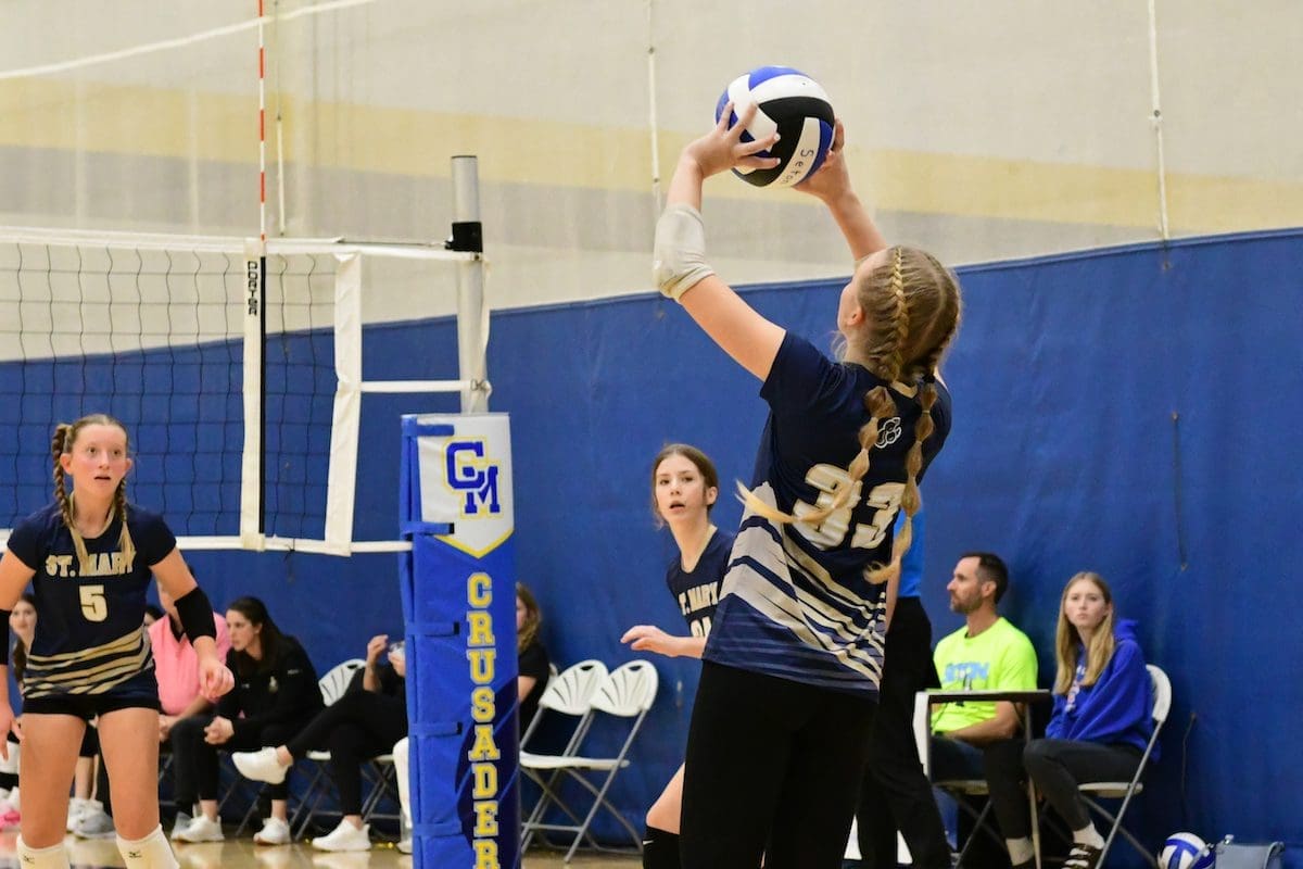 St. Mary, Hales Corners, defeated St. Charles, Hartland, 27-25, 21-25, 25-21, 25-18, in the girls Division 1 championship match.
