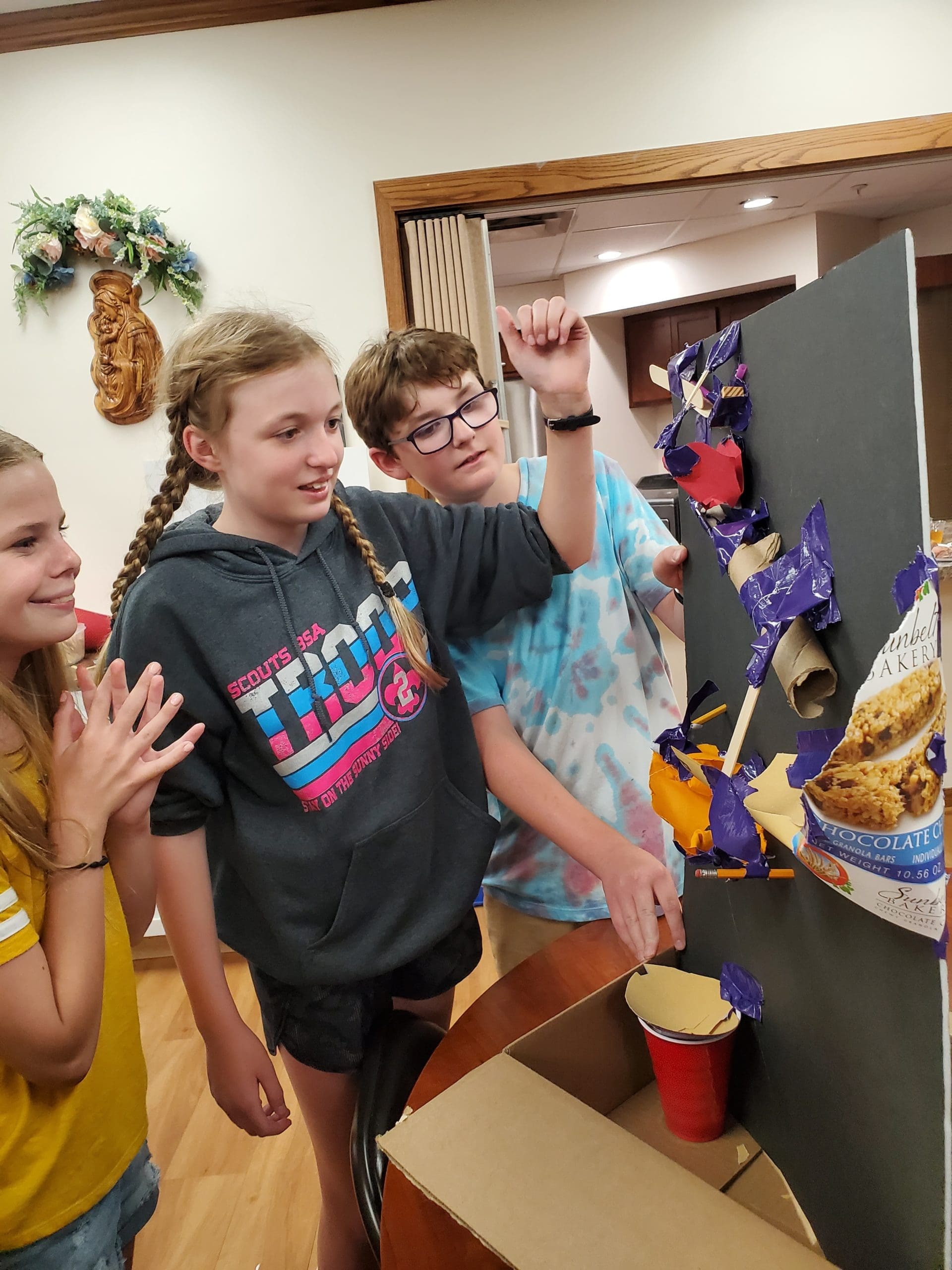 “Most nights there was a slide presentation, and I incorporated activities and experiments that correlated with their presentations,” Amason said. “Trevor Beach, director of evangelization at the Cathedral of St. John the Evangelist, started the program by explaining theology and the history of science in the Church. Fr. José Mario Nieto Restrepo, who works as part of the Catholic Community in Central Racine, gave a talk on astronomy. Our third speaker was Amanda McCauley, a science teacher at St. Catherine’s High School in Racine. Her presentation focused on physics. Our final speaker was Cheryl Maraccini from St. Rita School in Racine; she talked about biology.”