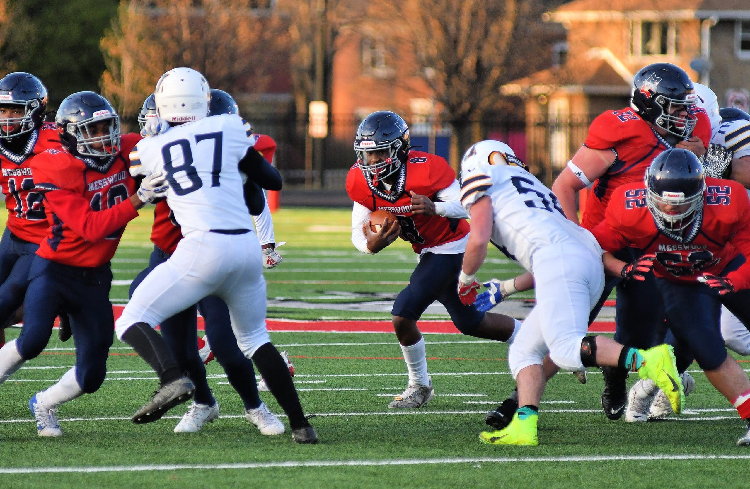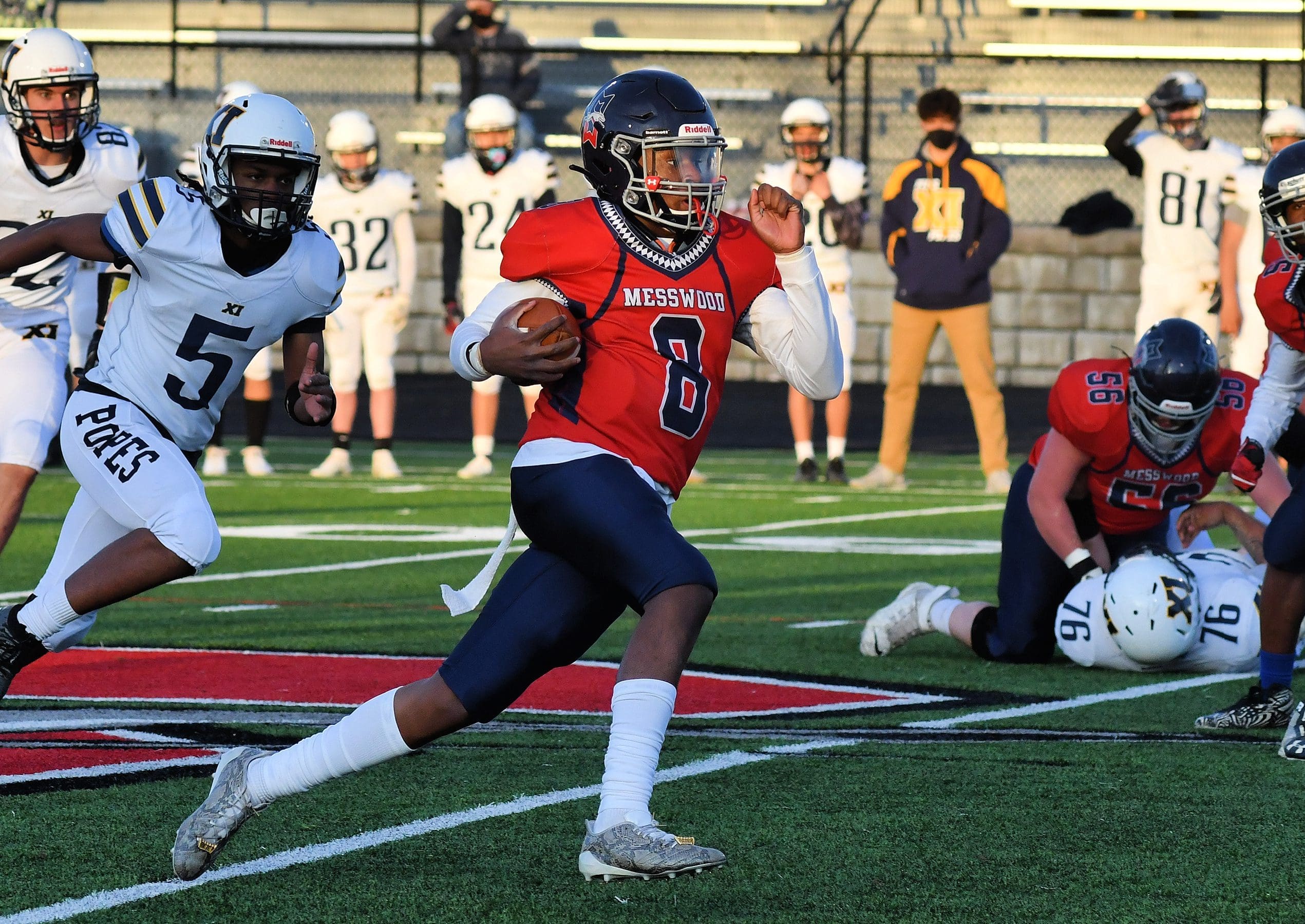 Messwood’s double-wing rushing attack was led by sophomore Ishmael Emmanuel-Holloway’s 106 yards on 22 carries, and quarterback Jeremiah Thompson ran 19 times for 68 yards and an 11-yard touchdown with 3:52 left in the game.