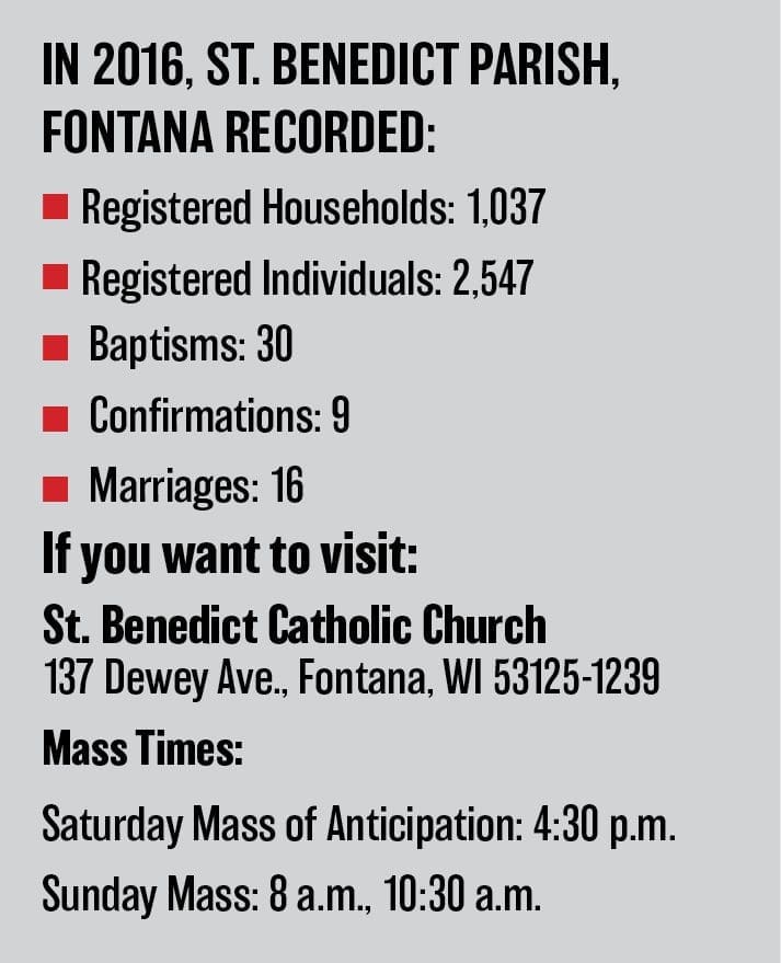 “At St. Benedict’s, all are welcome,” Fr. Danczyk emphasized. “We join together, we pray together. We cry together, we laugh together and support each other. As a parish, we have a wonderful sense of community. What I’ve found unique here and at St. Francis in Lake Geneva is that after Mass, people don’t necessarily run to their vehicles to go home. They spend time visiting and that pleases me. They care about their neighbors and they care about the people they sit next to in the pew and in that way they strengthen each other.”