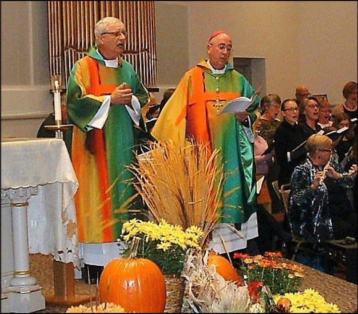 Fr. Michael Strachota (left) and Bishop James Schuerman celebrated Mass for the 170th anniversary of St. Catherine Parish on Saturday, Nov. 18. (Photo by Tom Andrews)
