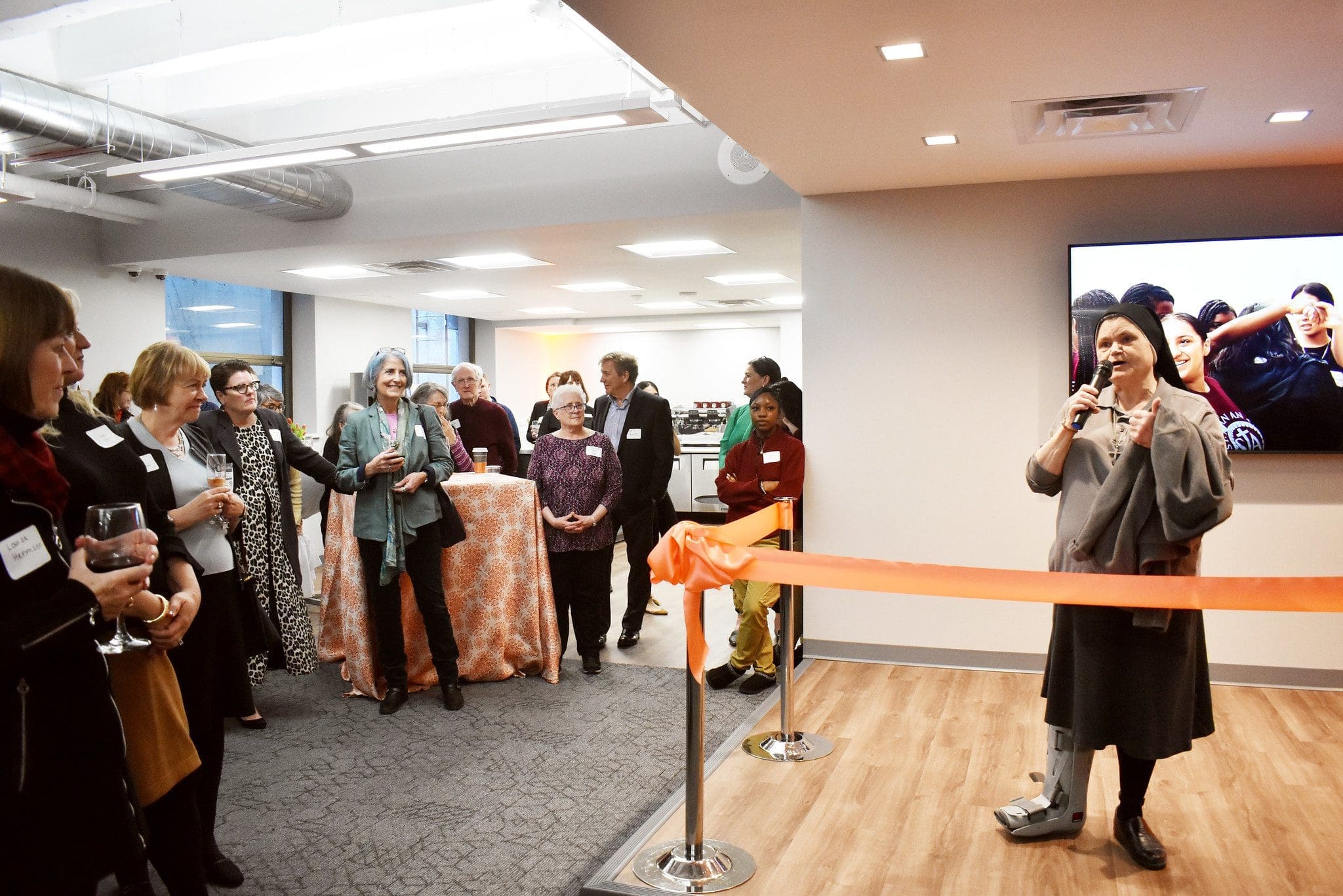More than 100 donors, alumnae, friends and partners gathered in the Burke ROAR Center to celebrate the ribbon-cutting ceremony and witness the blessing of the space by Fr. Tim Kitzke of Three Holy Women Parish.