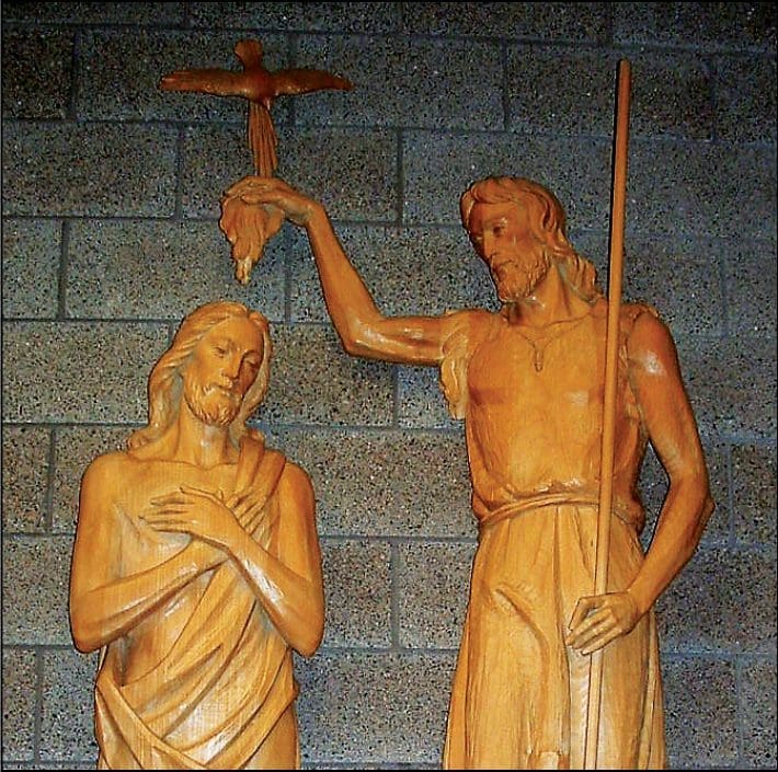 These wooden sculptures depict the baptism of Jesus Christ by John the Baptist. (Photo by Tom Andrews)