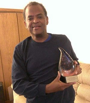 Capuchin Br. Bob Smith displays the award presented to him recently by the Knights and Ladies of St. Peter Claver in recognition for his contributions to Catholic education in the Milwaukee Archdiocese. (Submitted photo courtesy Annette Frink)