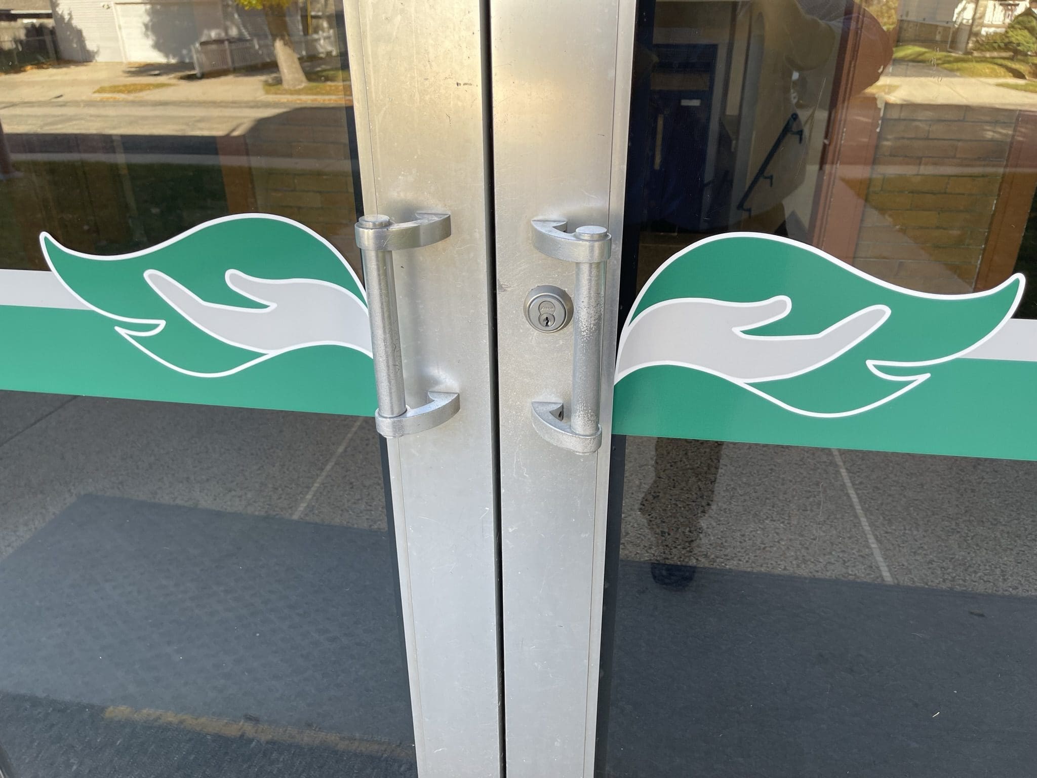 Since the unveiling, the school has been, and still is, in the implementation phase, where they are changing posters and signage around the building, and they have added vinyl versions of the new logo to the doors to the school.